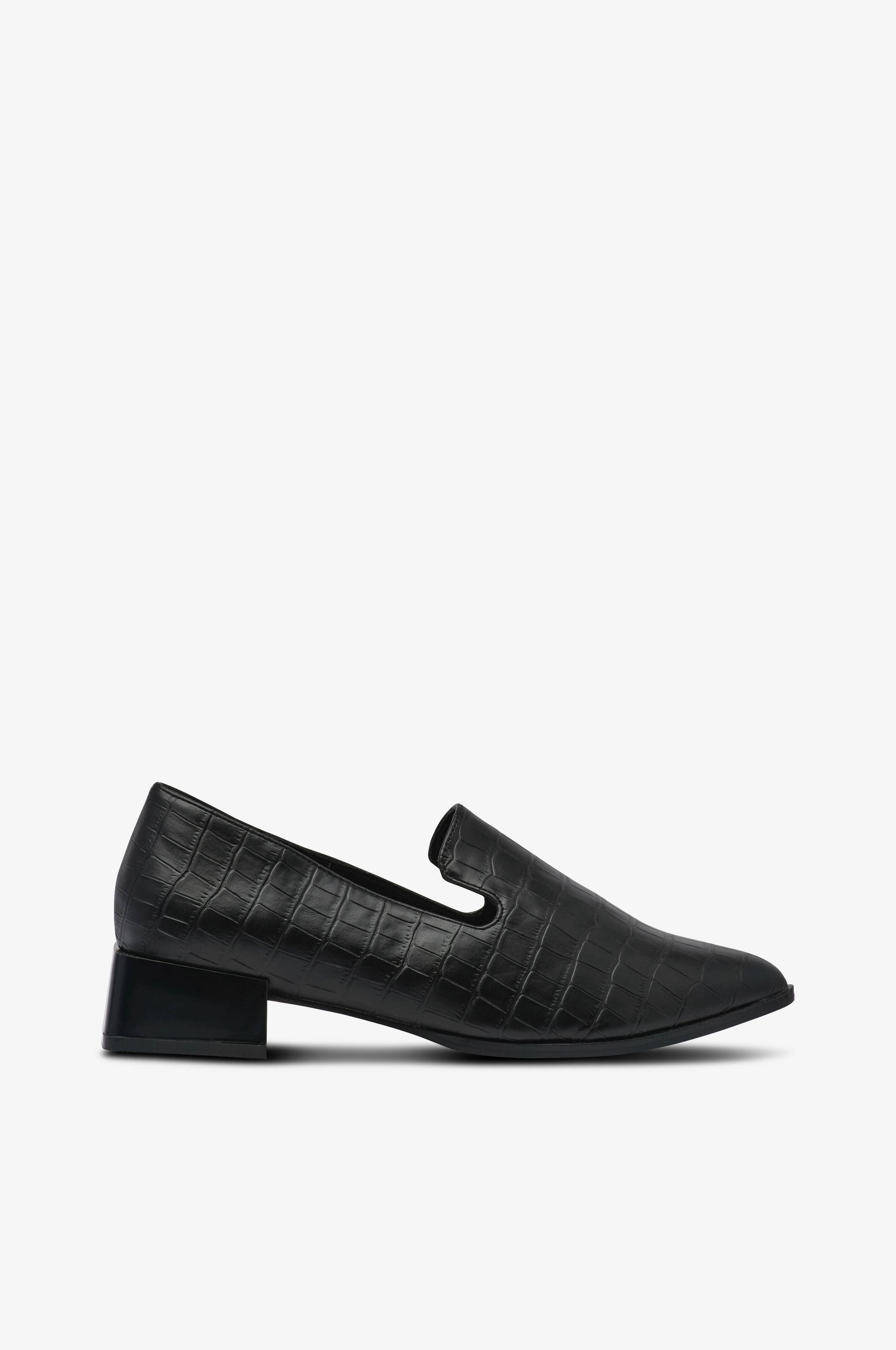 • Loafers med et krokodillemønster og spids tåform• Øvredel i imiteret læder• Bred skolæst• Blokhæl• Hælhøjde: 3,5 cm