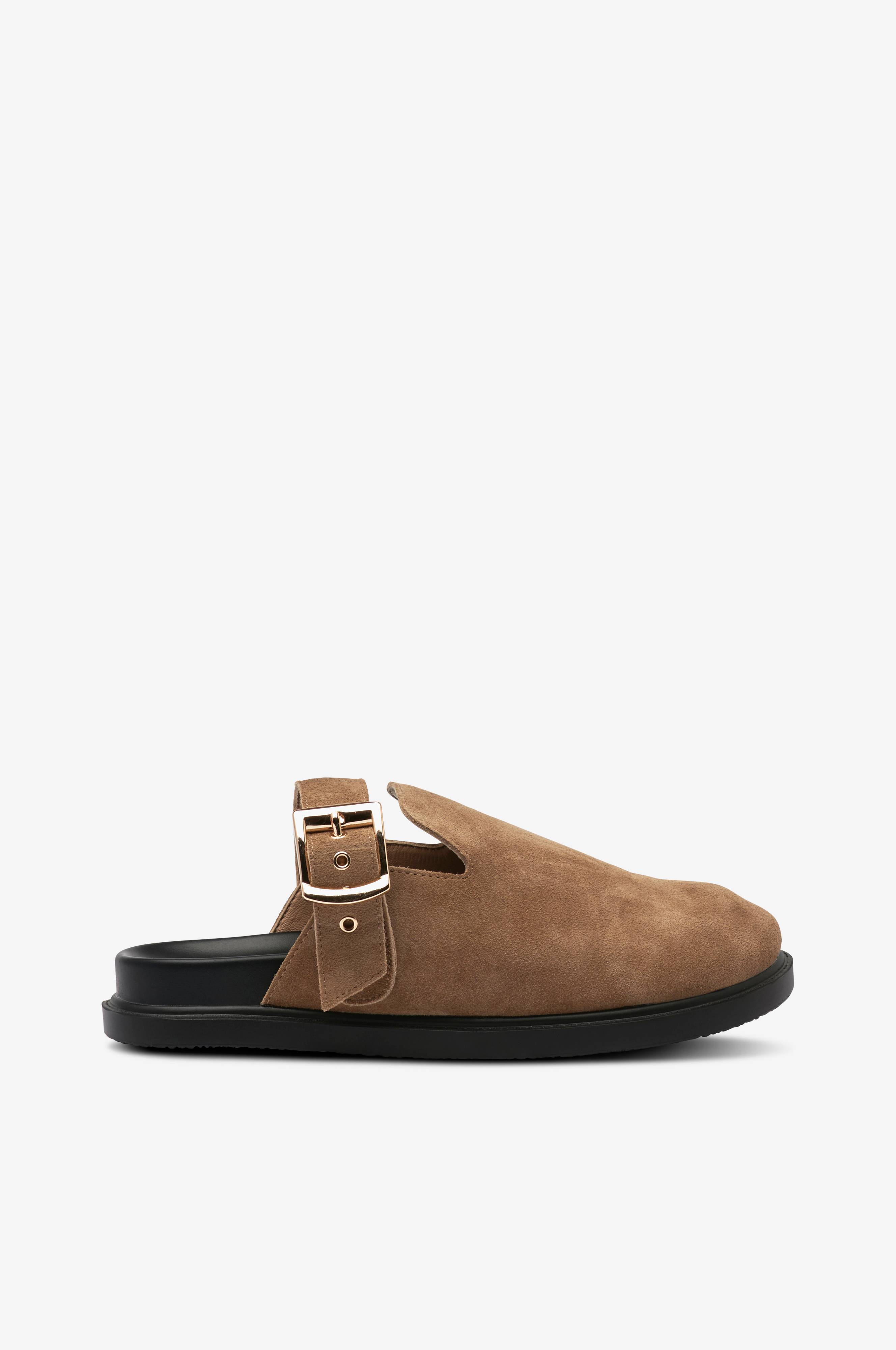 • Ekstra bred pasform• Sandaler i ruskind• Rem med spænde bagpå