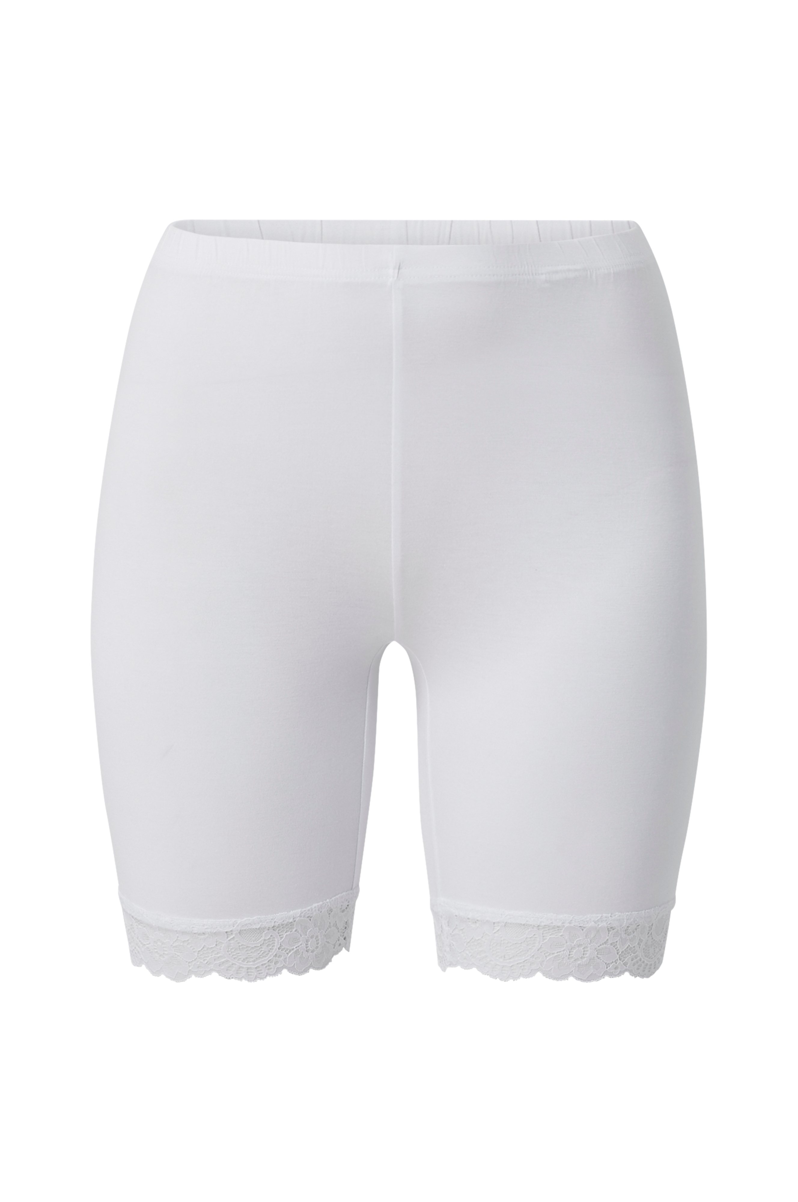 Shorts Lace Cycling Shorts fra Zizzi i tynd, blød viskosejersey med bred blonde forneden og elastisk talje.