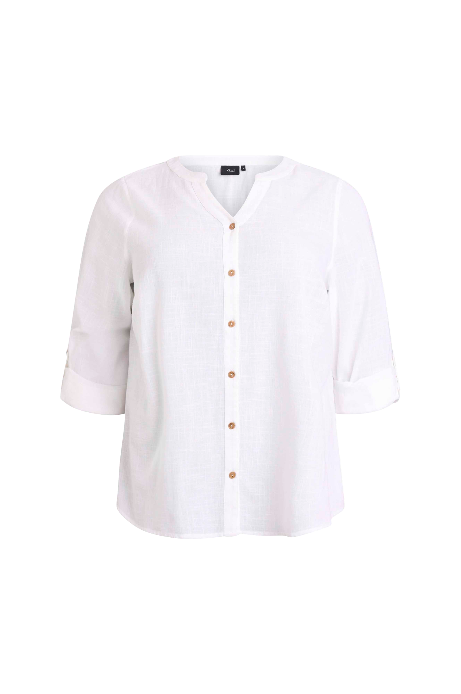 • Skjorte i slub bomuld• V-formet halsudskæring• Lange, opfoldende ærmer• Afrundet søm• Plusstørrelser