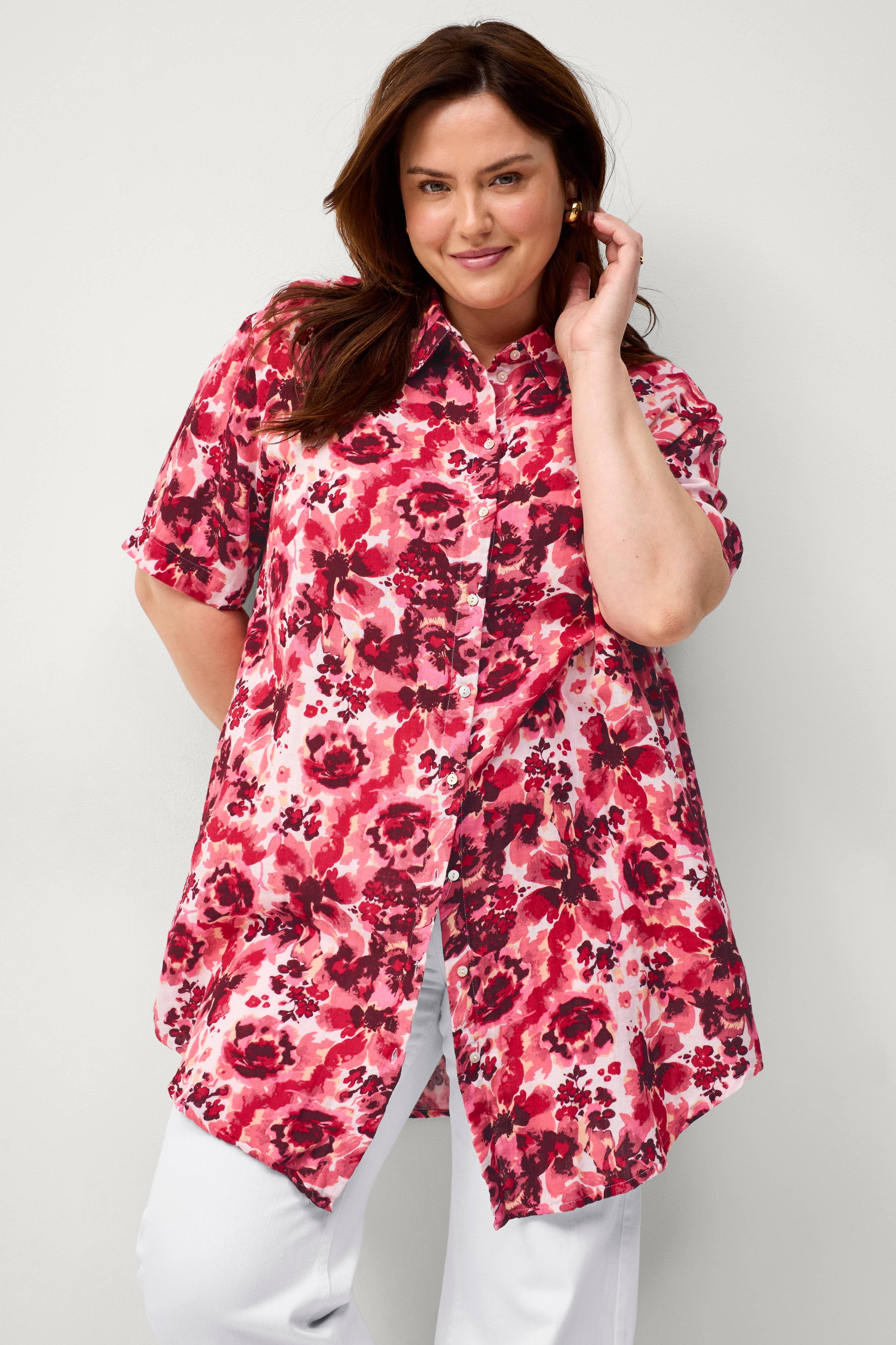 • Lang skjorte med printet blomstermønster• Løs pasform• Knapper• Halvlange ærmer• Fremstillet af bomuldsmuslin• Store størrelser