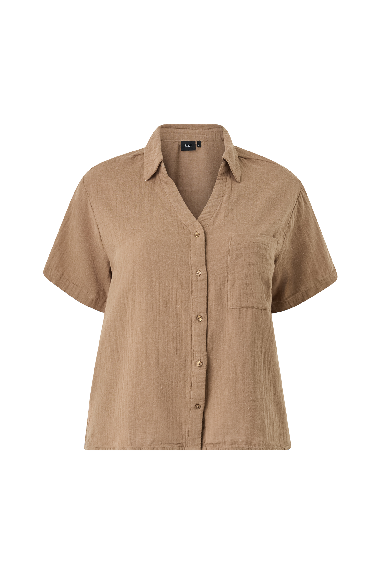 • Skjorte i seersucker• V-udskæring med krave• Knaplukning• Brystlomme• Plusstørrelser