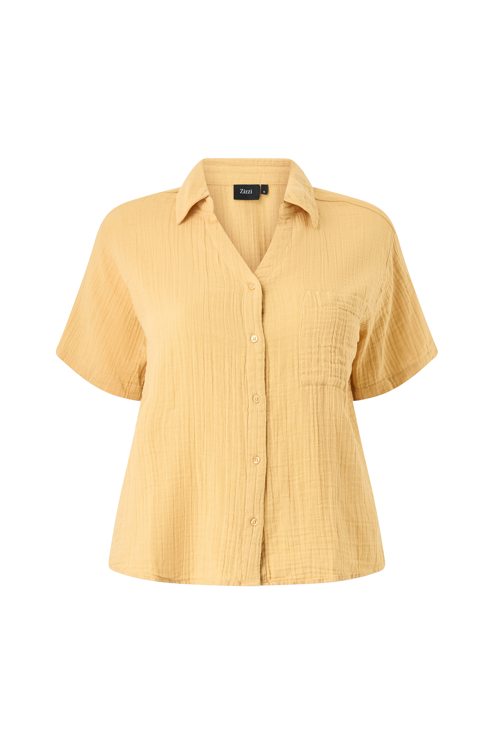 • Skjorte i seersucker• V-udskæring med krave• Knaplukning• Brystlomme• Plusstørrelser