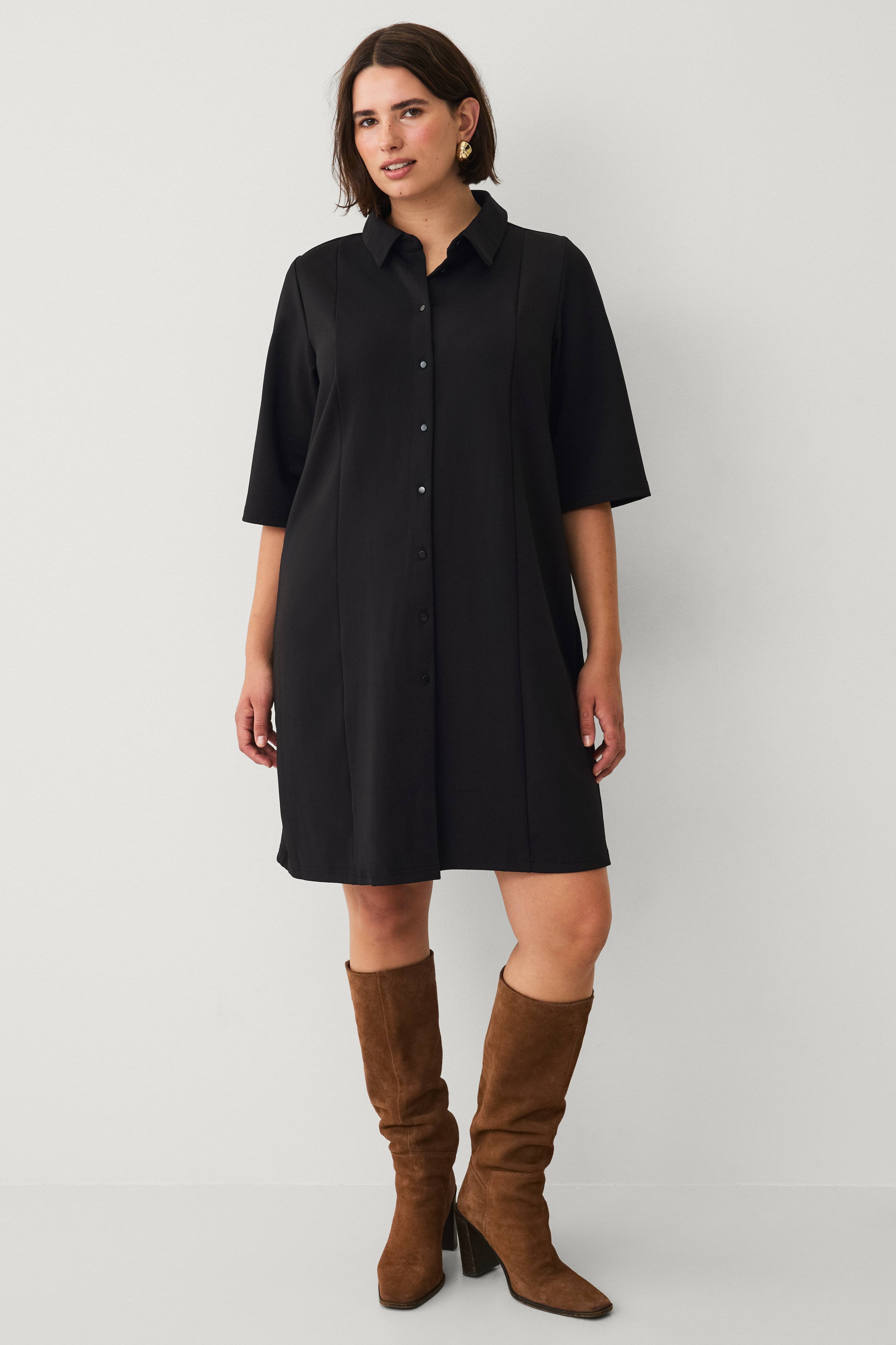 • Krave• Halvlange ærmer• Knaplukning• Normal pasform• Plusstørrelser• Længde: 96 cm i størrelse S