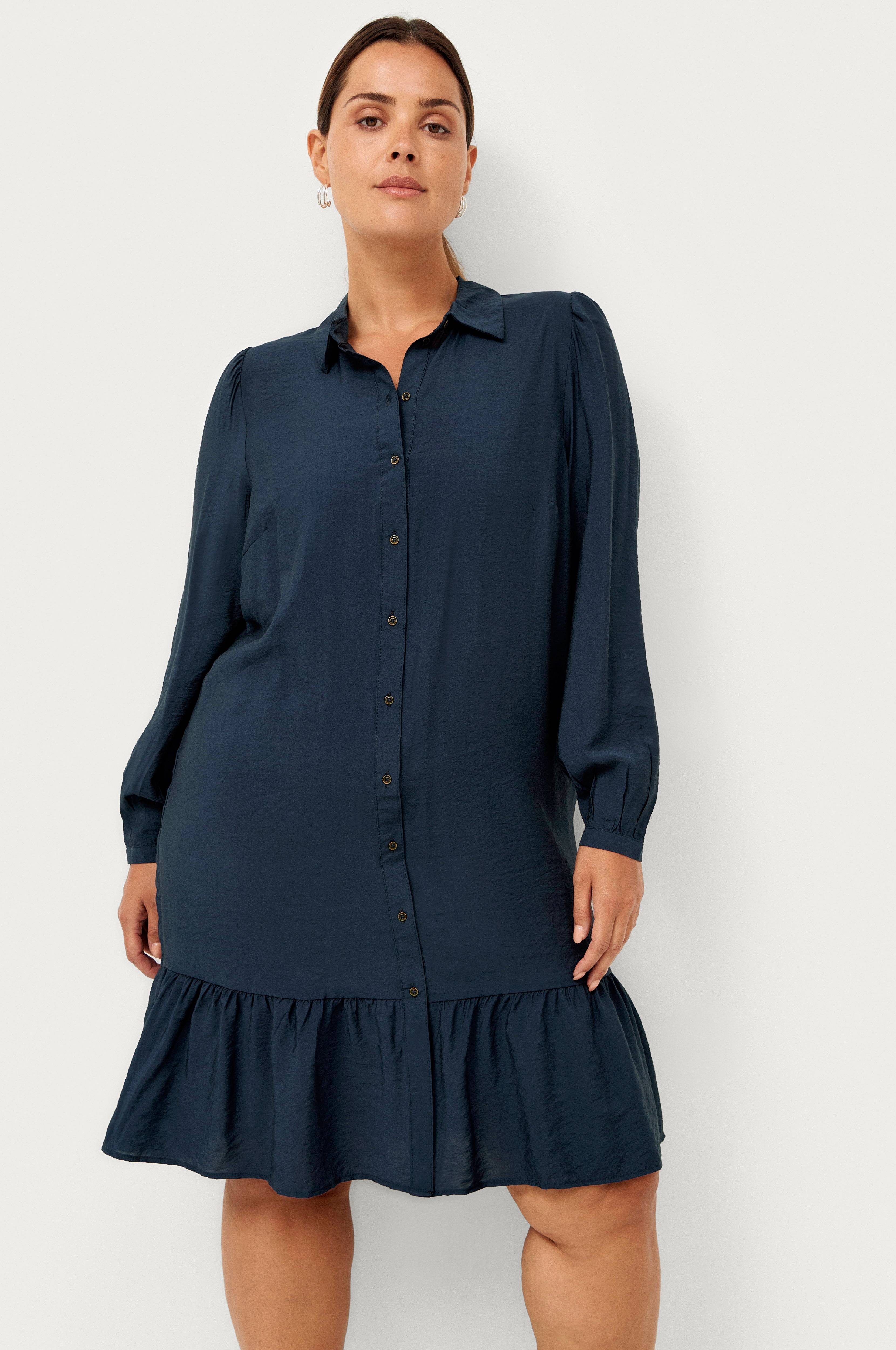 • Store størrelser• Lige model med volant nederst• Knapper foran• Lange ærmer med tynd manchet• Længde: 102 cm i størrelse S