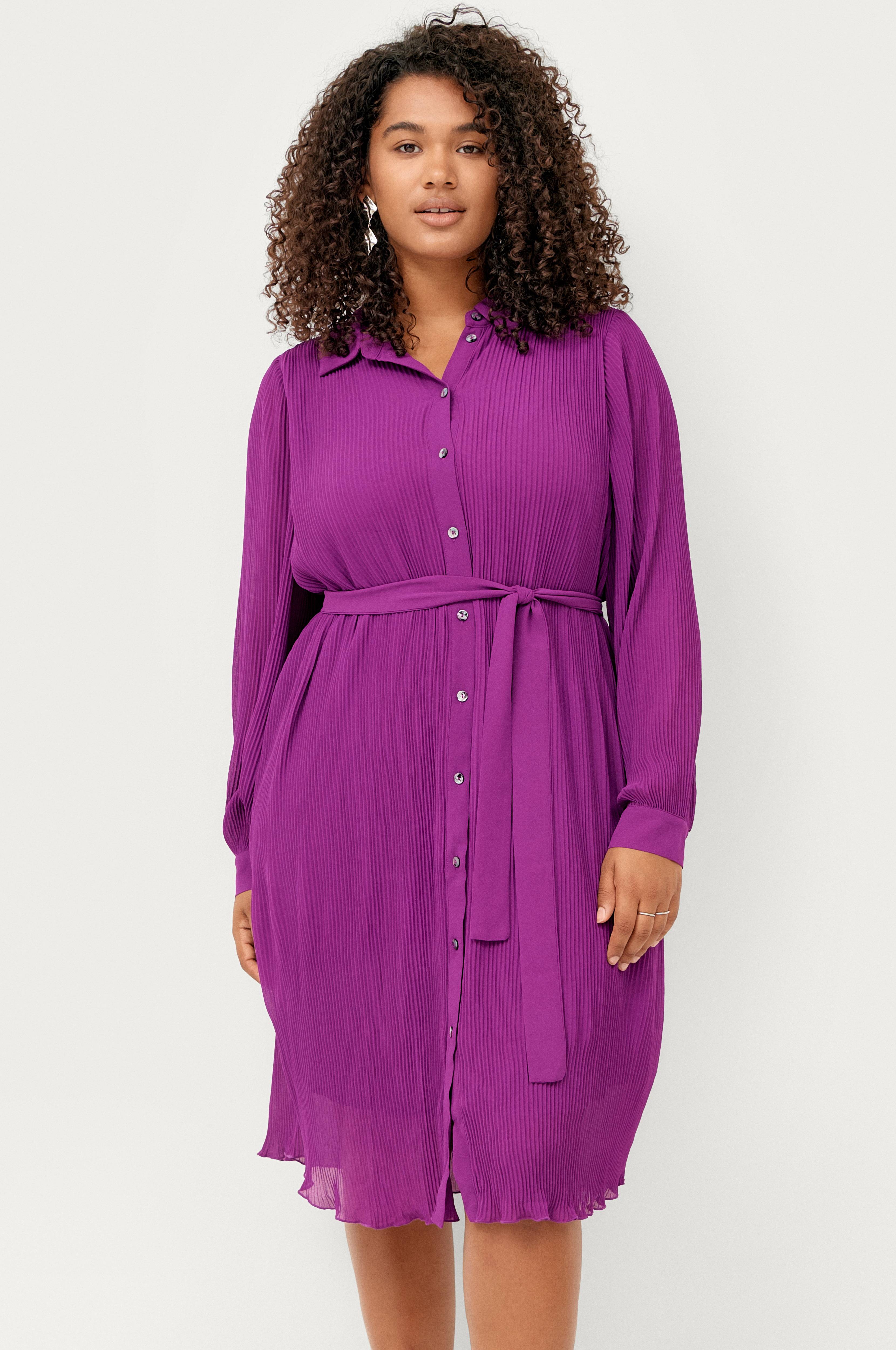 • Plisseret kjole i chiffon• Knapper foran• Lange, brede ærmer med manchet• Snøring ved taljen• For i chiffon• Længde: 110 cm i størrelse S