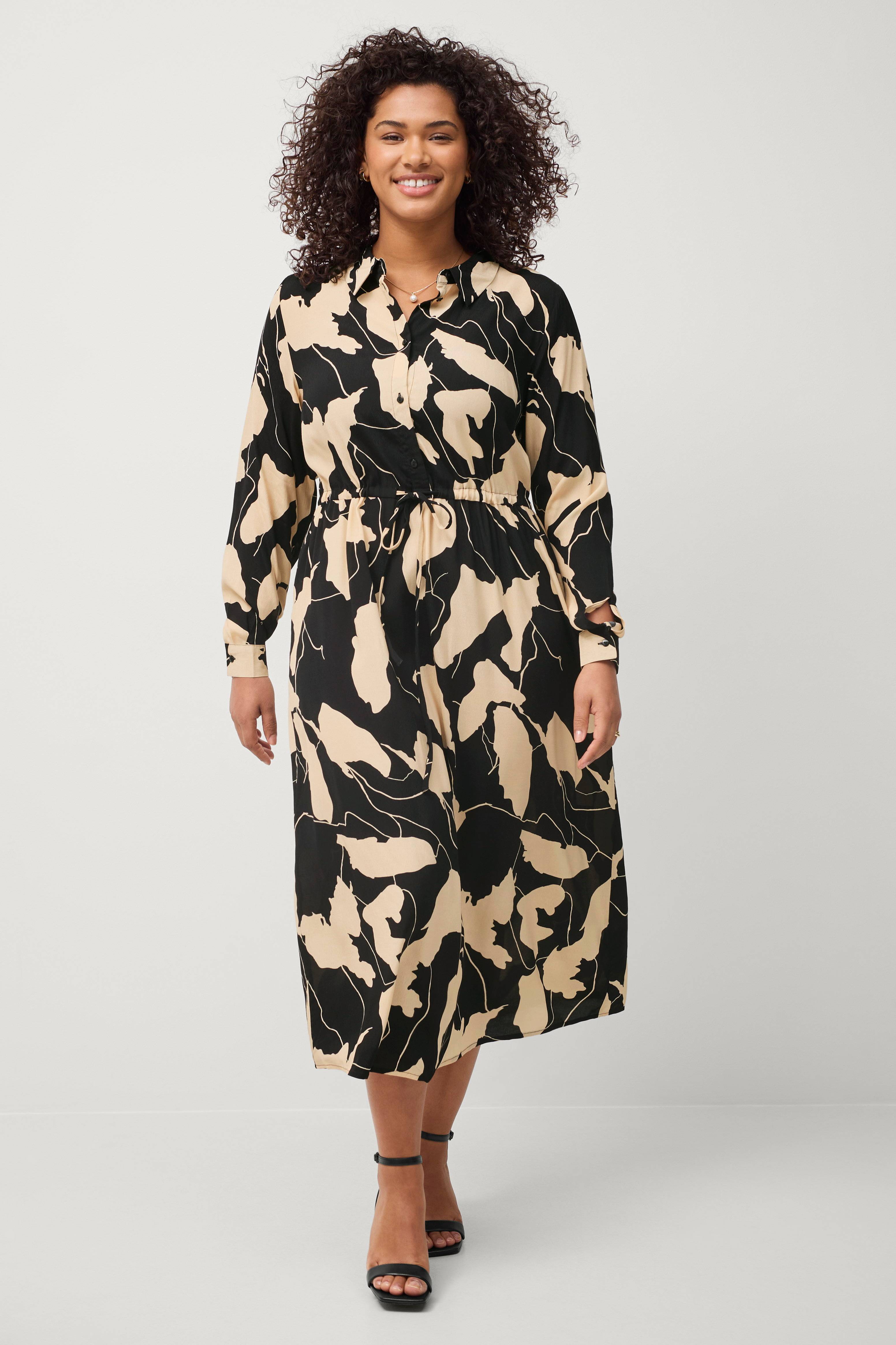 • Mønstret kjole i viskose• Knapper oppe foran• Justérbar talje med træksnørre• Store størrelser• Længde: 128 cm i størrelse S
