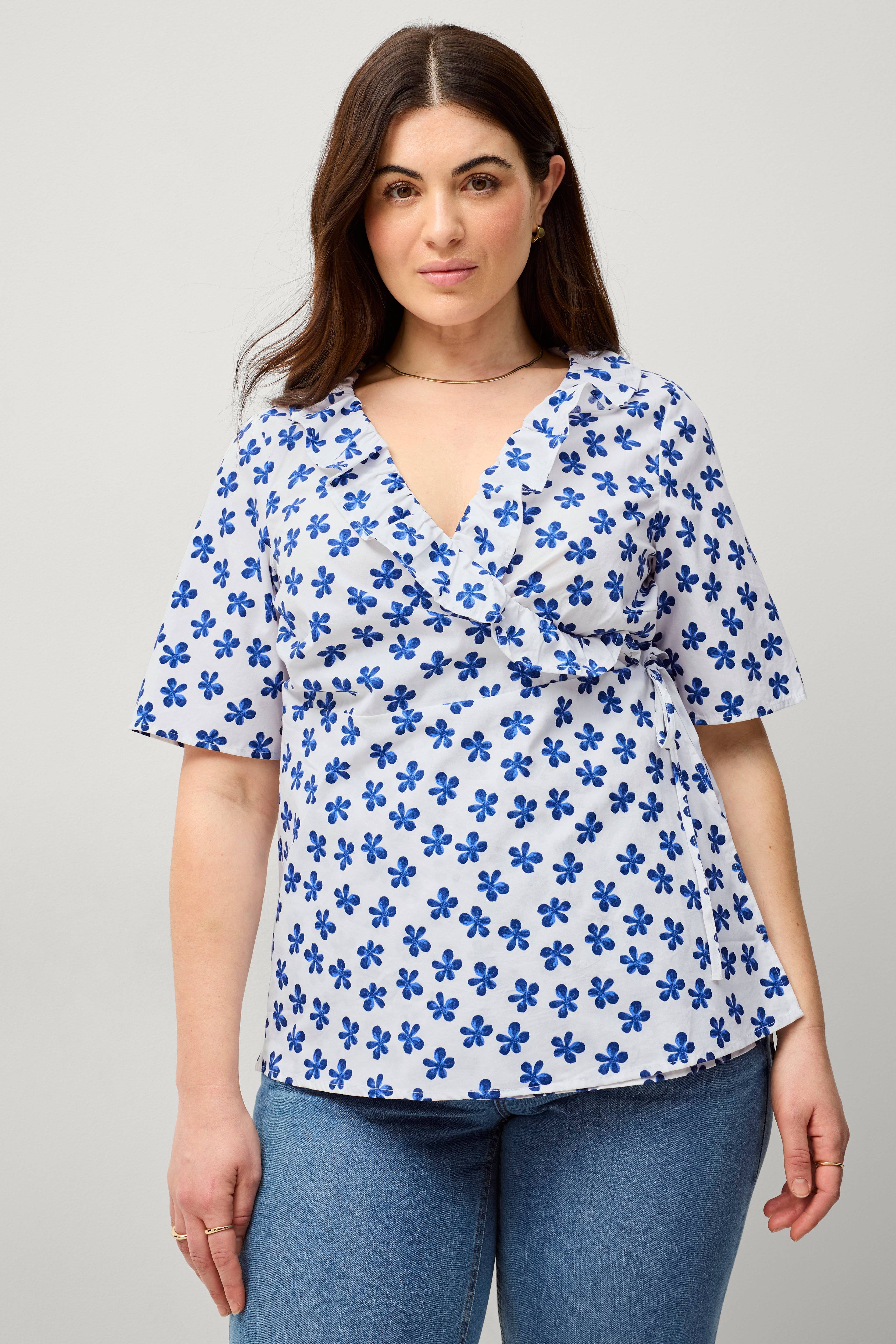 Zizzi Slå-om bluse vLola S/S Wrap Aop Top