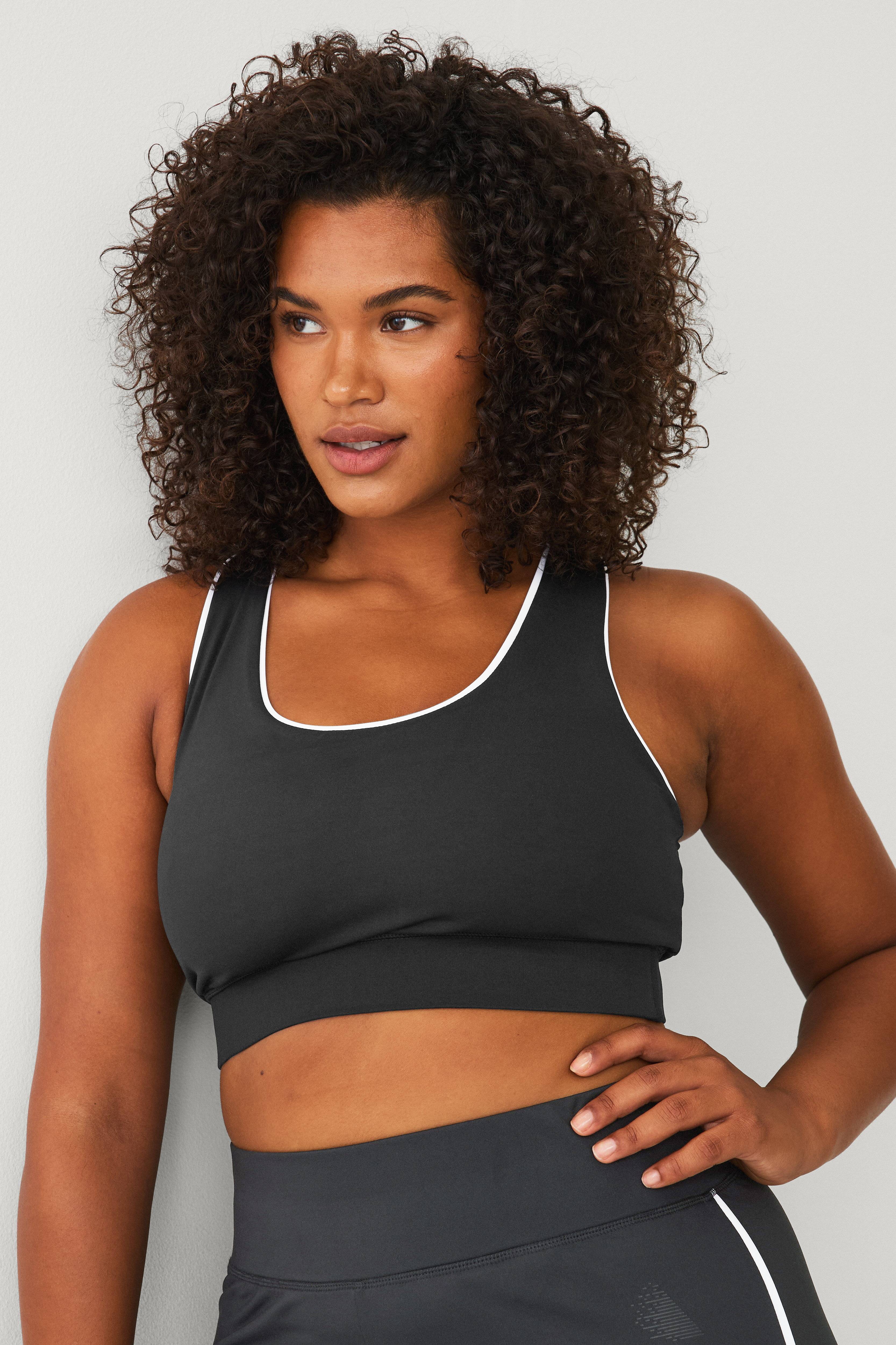 • Sports-bh med dekorative linjer• Racerbackdesign• Bred elastik under brystet• Mediumhøj støtte• Elastisk, luftigt materiale• Store størrelser
