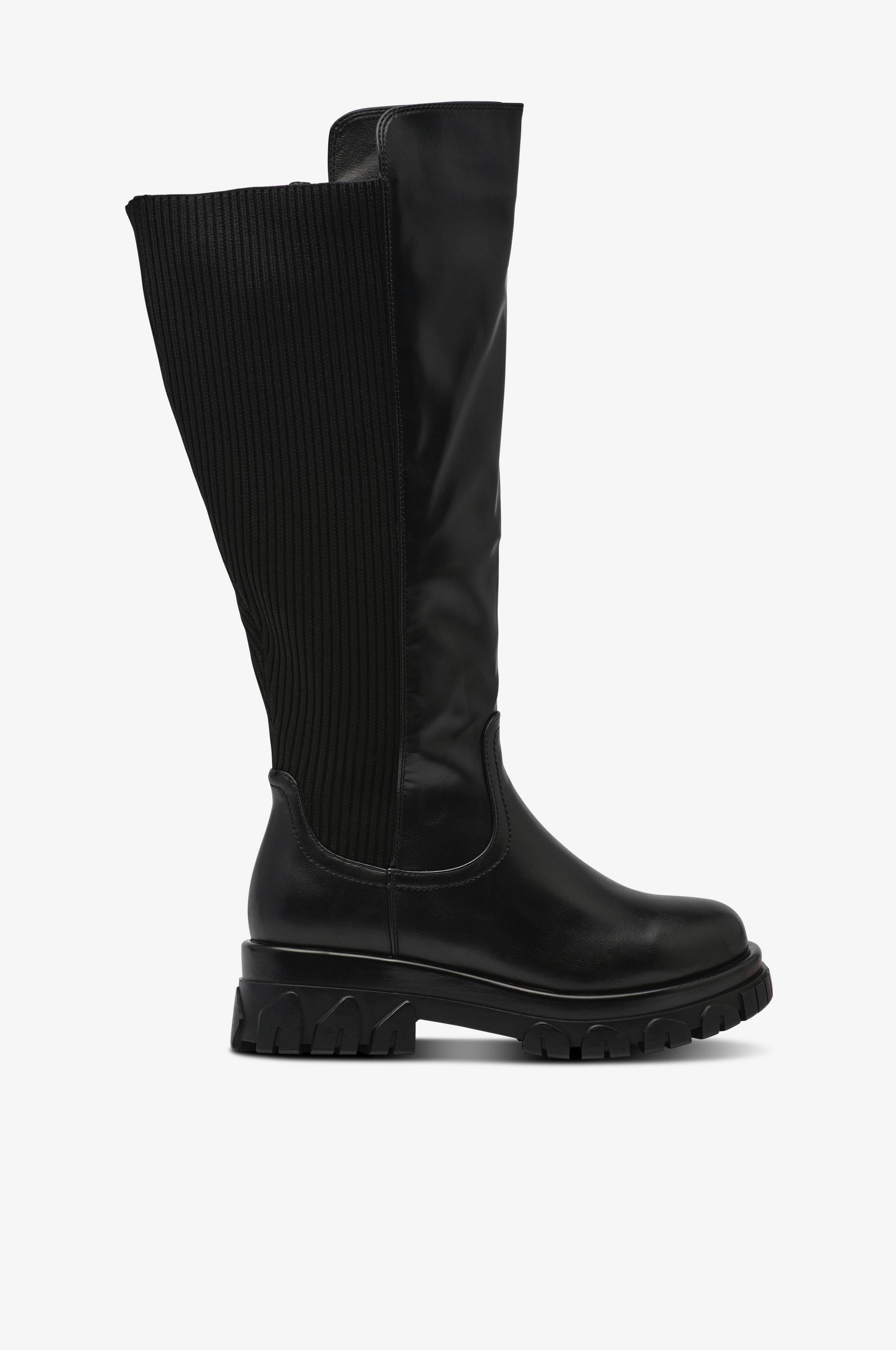 • Model i imiteret læder• Afrundet snude• Bredt elastisk panel bag på skaftet med lynlås på indersiden• Varmt foret• Høj, skridsikker sål• Bred skolæst• Skafthøjde: 38 cm i str. 37• Hælhøjde: 5 cm• Sålhøjde: 3 cm