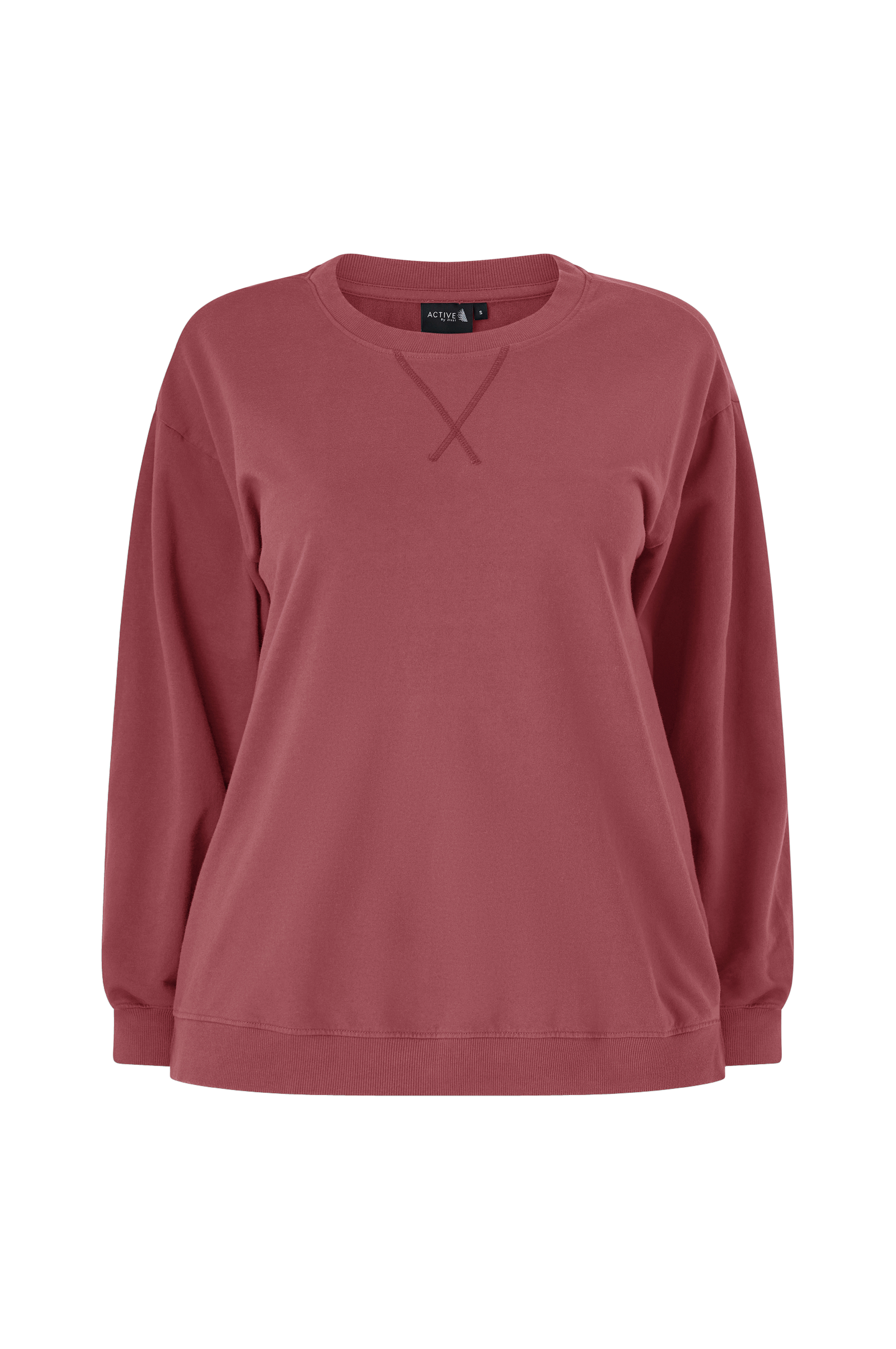 • Lige model• Rund, ribbet halsudskæring• Lange ærmer• Ribmanchet ved manchetterne og nederst• Afslappet pasform• Store størrelser