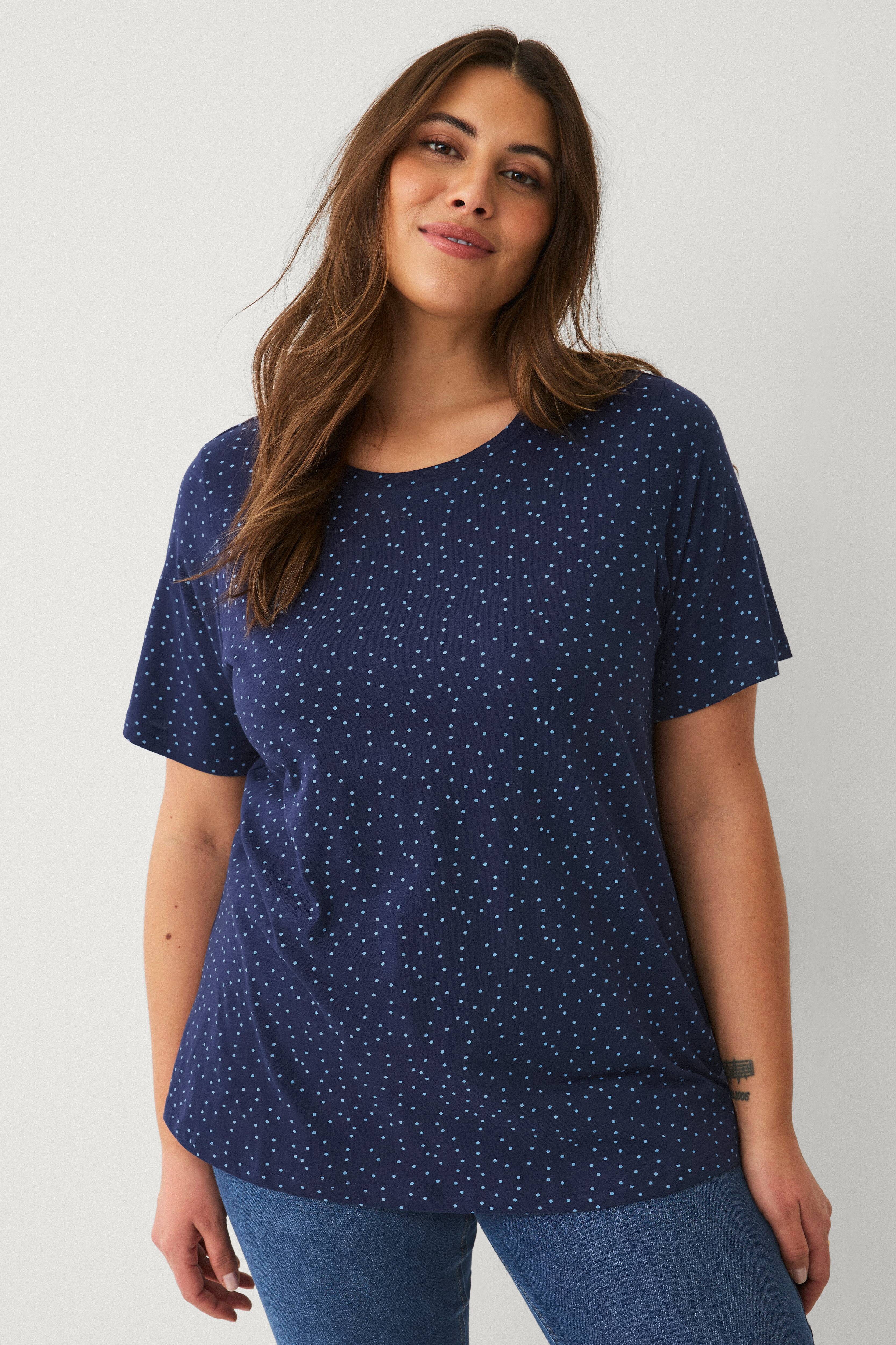 • T-shirt med prikmønster• Normal pasform• Rund halsudskæring• Store størrelser
