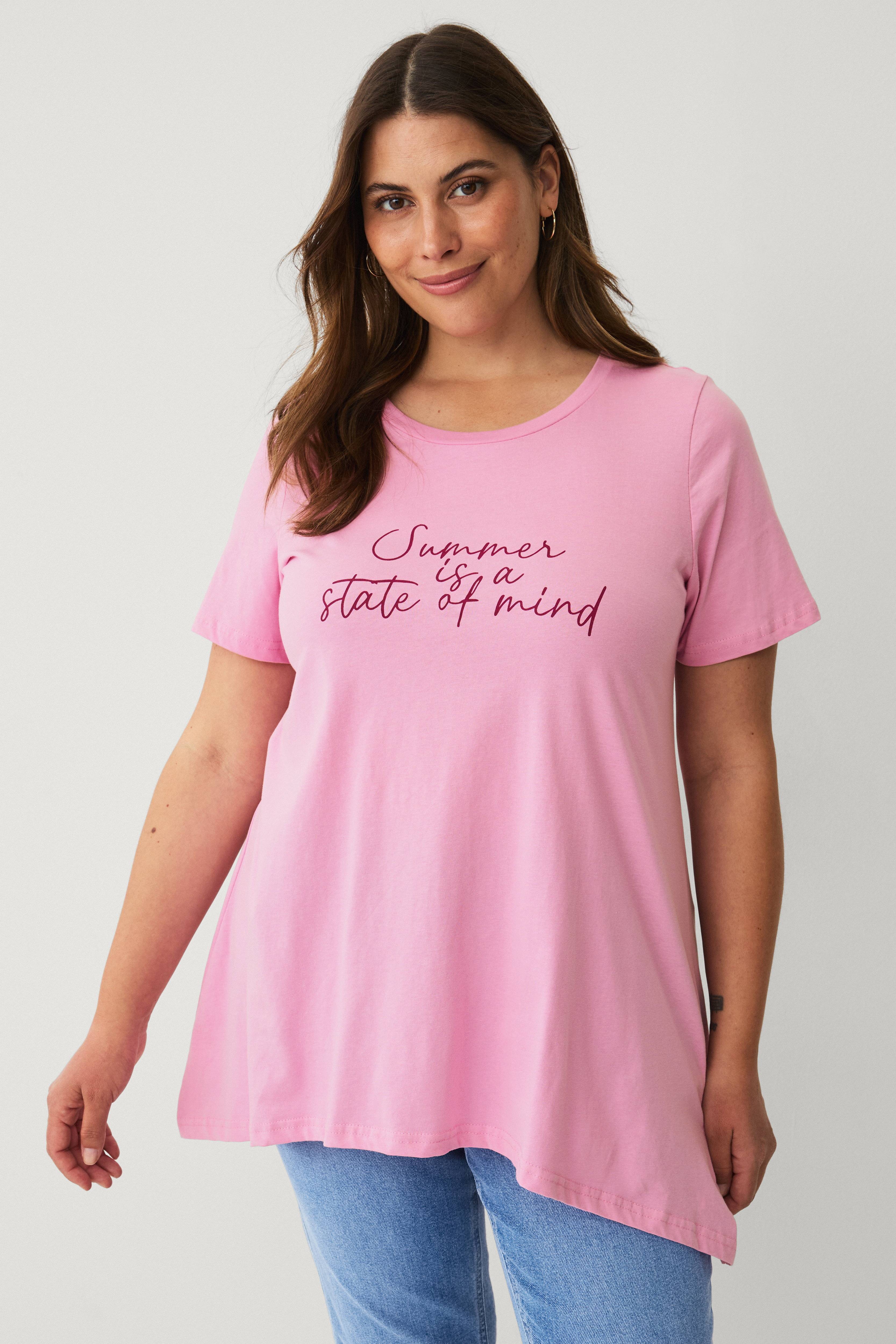 Jeg kan godt lide, at t-shirten er lavet af bomuld med flotte farver. Den lyserøde er stor, men jeg bruger den som nattøj. Jeg er altid tilfreds med, hvad jeg køber hos Ellos, og p…