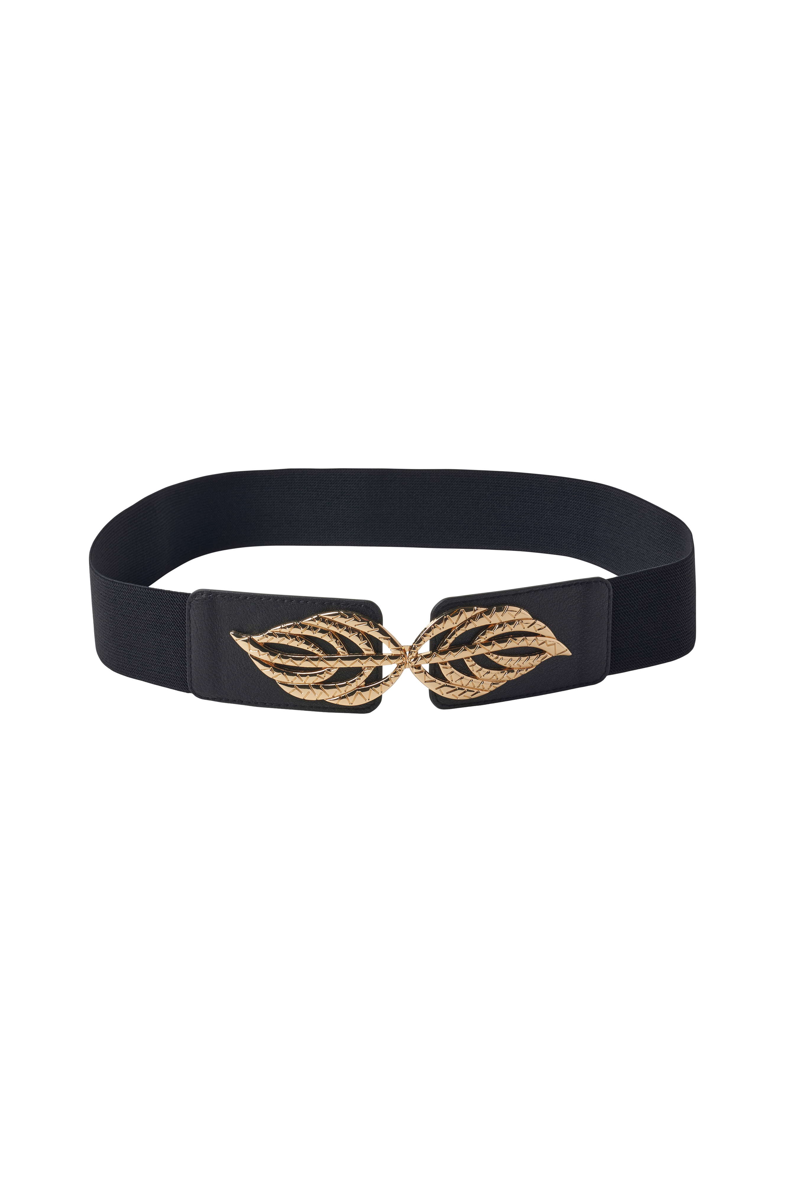 • Elastisk taljebælte med guldfarvet, løvlignende spænde• Store størrelser• Bredde: 5 cm