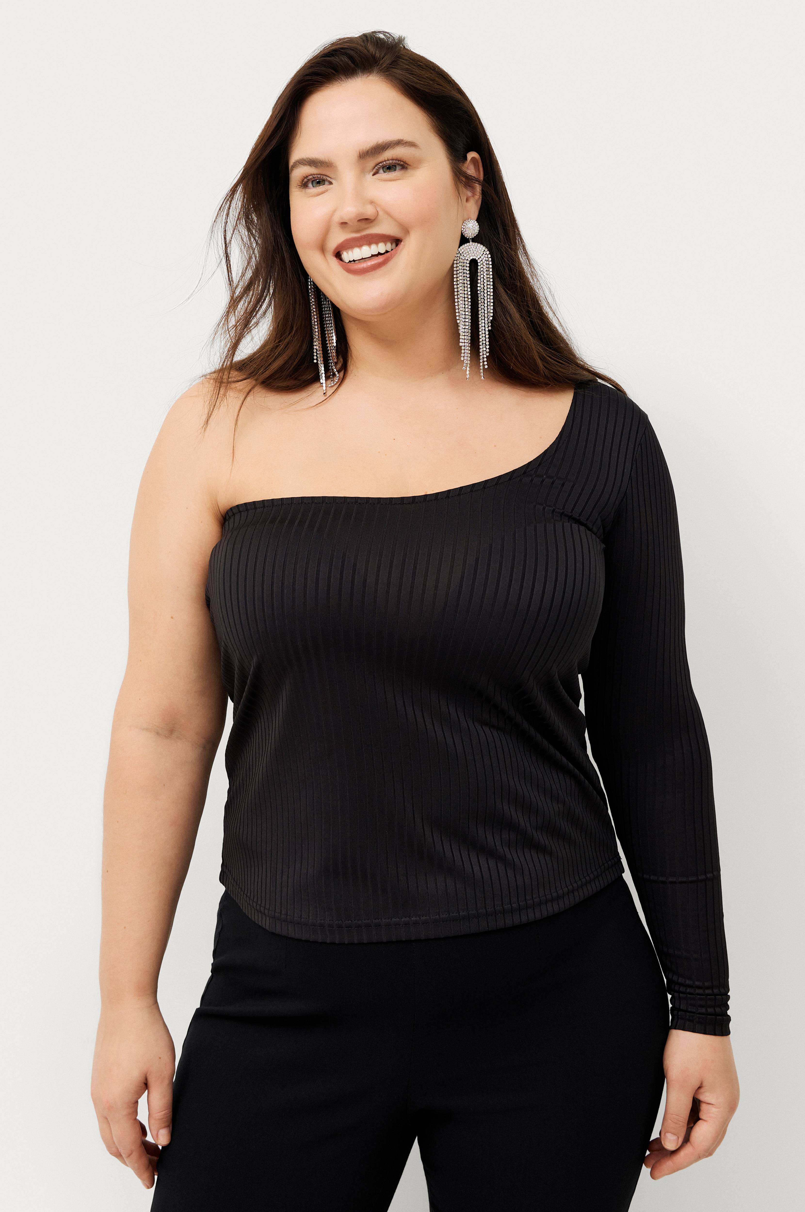 • En skulder design• Elastisk, ribbet jersey• Figursyet pasform