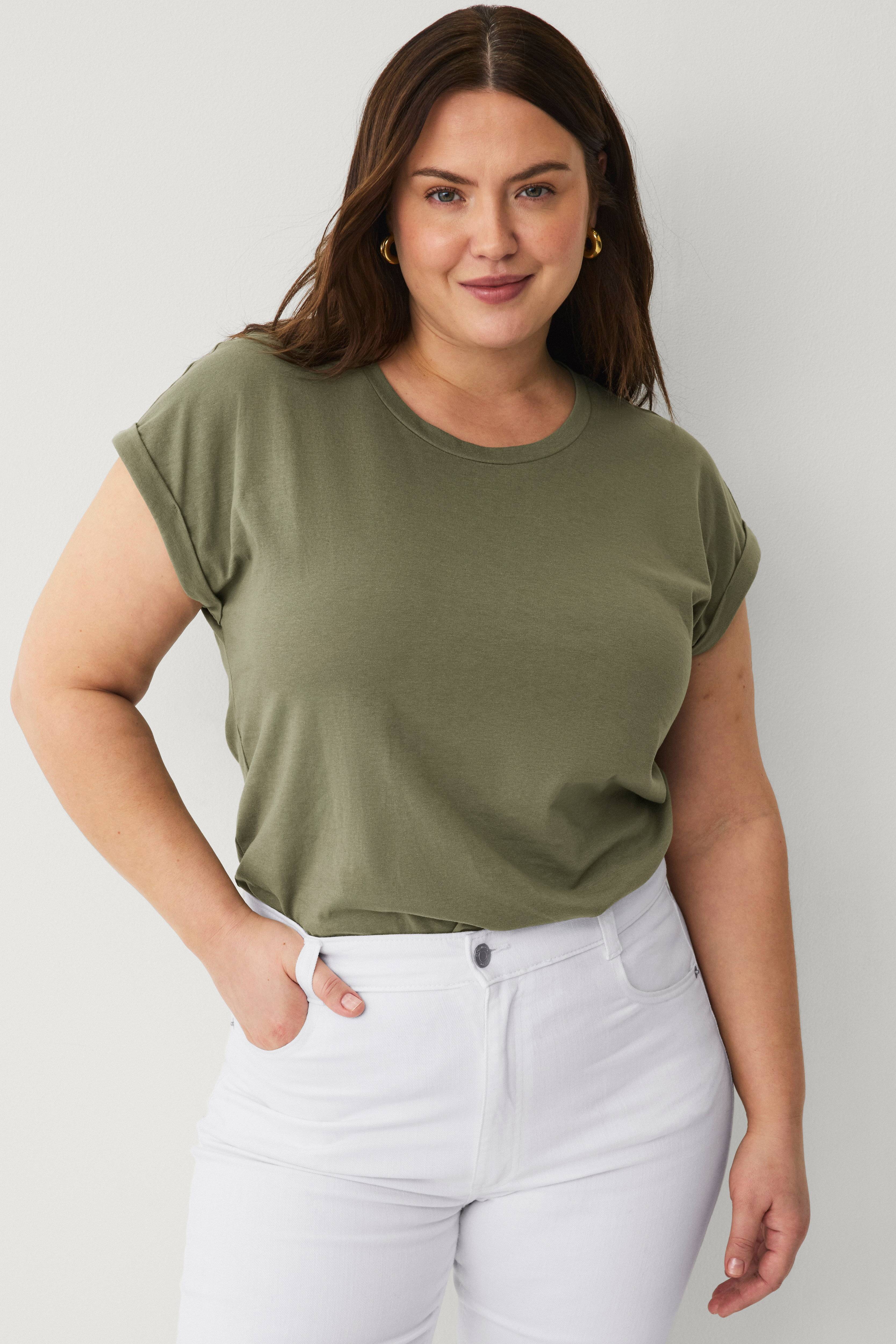 • Løs pasform• Korte ærmer med oprullet• Store størrelser
