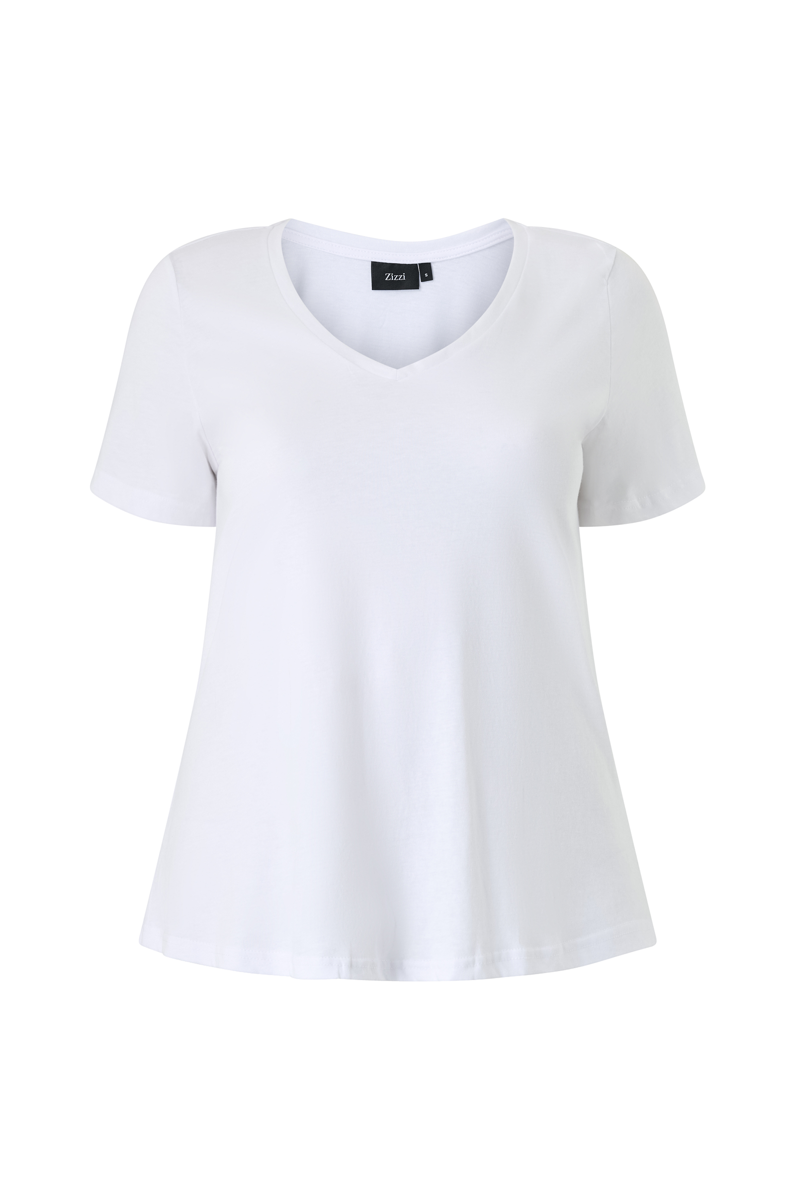 • V-udskæring• Korte ærmer• Strækkvalitet• Plusstørrelser