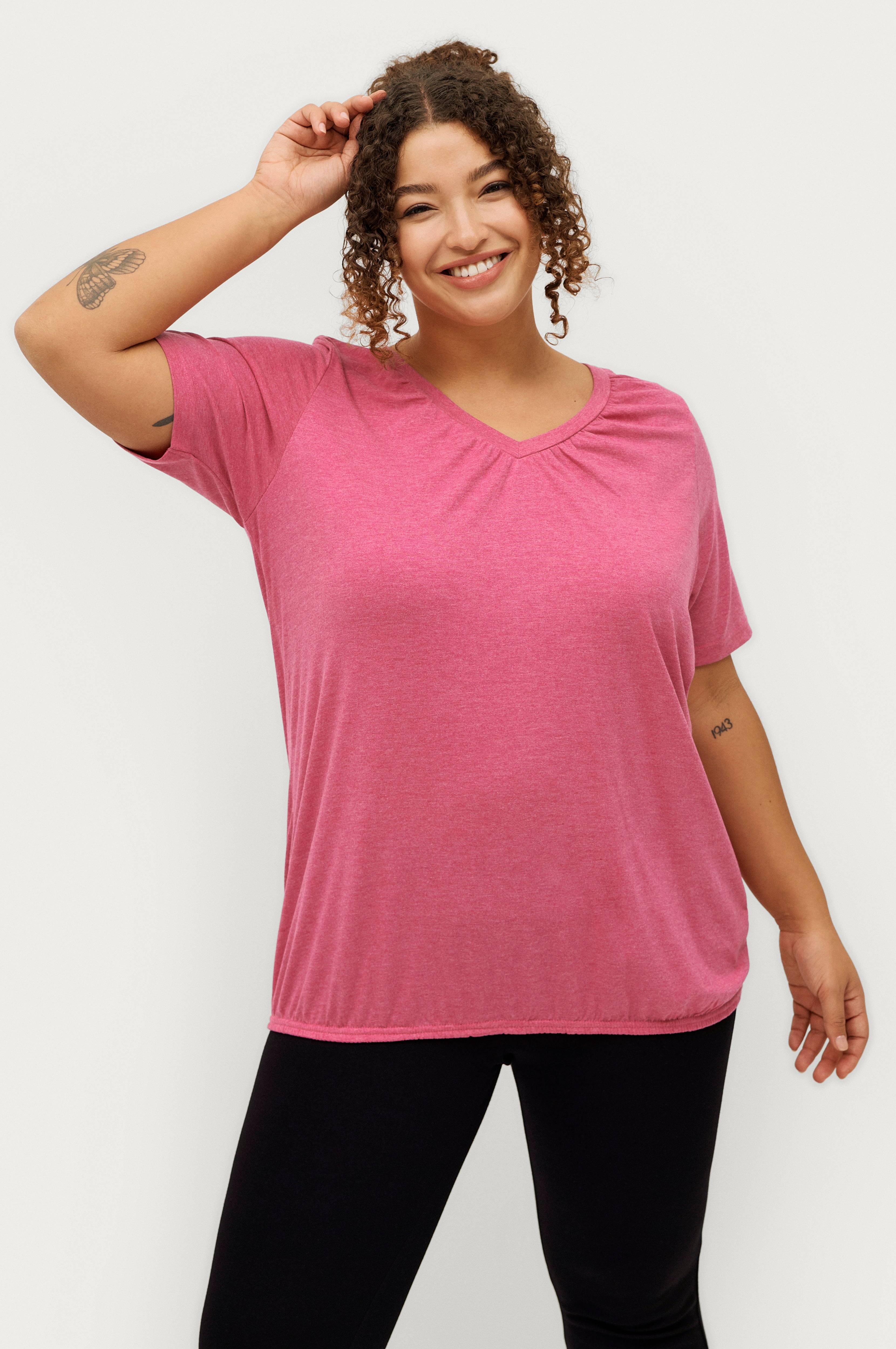 • Korte ærmer• V-udskæring med samling• Elastisk bånd nederst• Store størrelser
