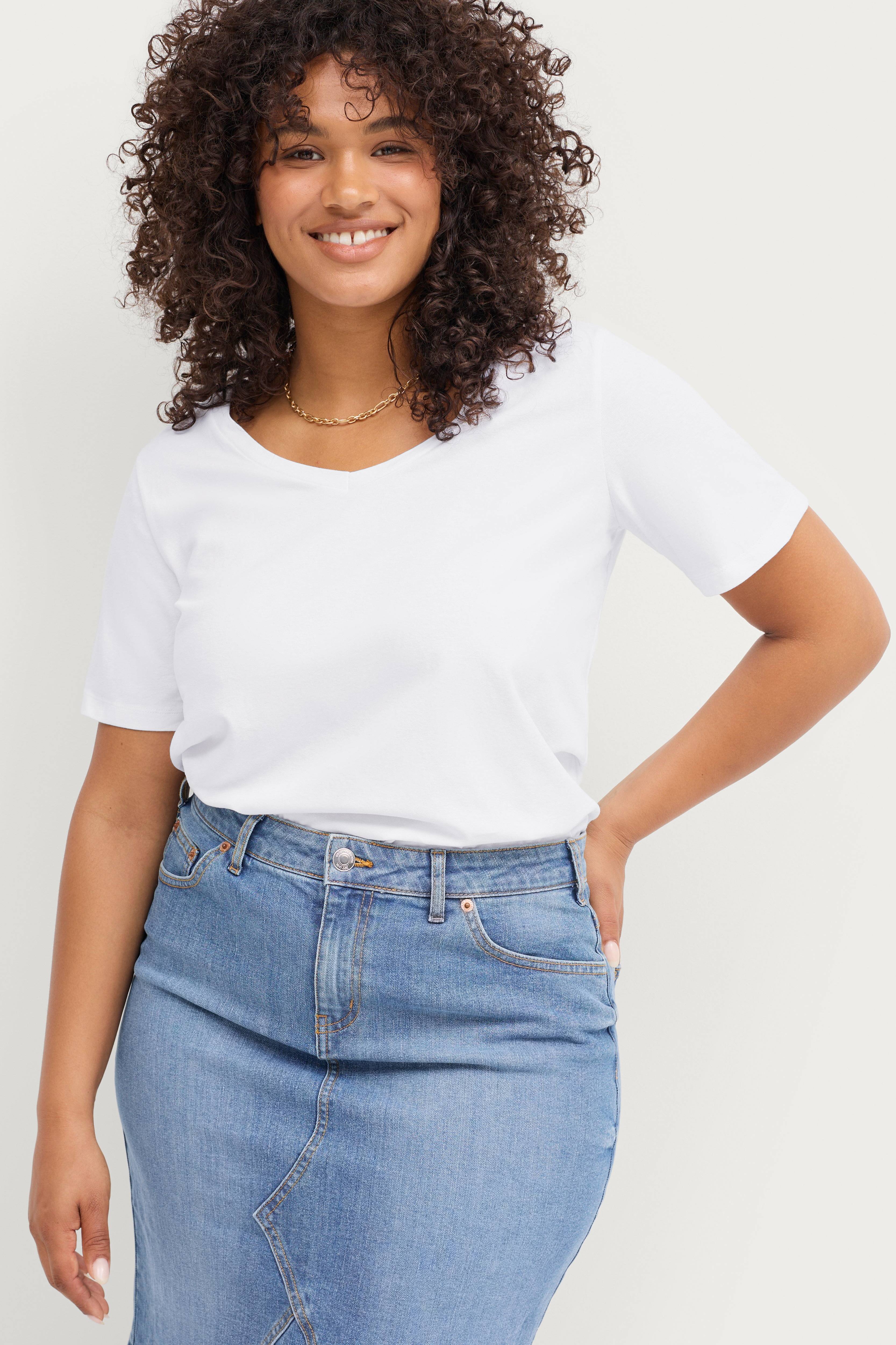 • Kort ærme• V-formet halsudskæring• Komfortabel pasform• Blød, elastisk bomuldskvalitet