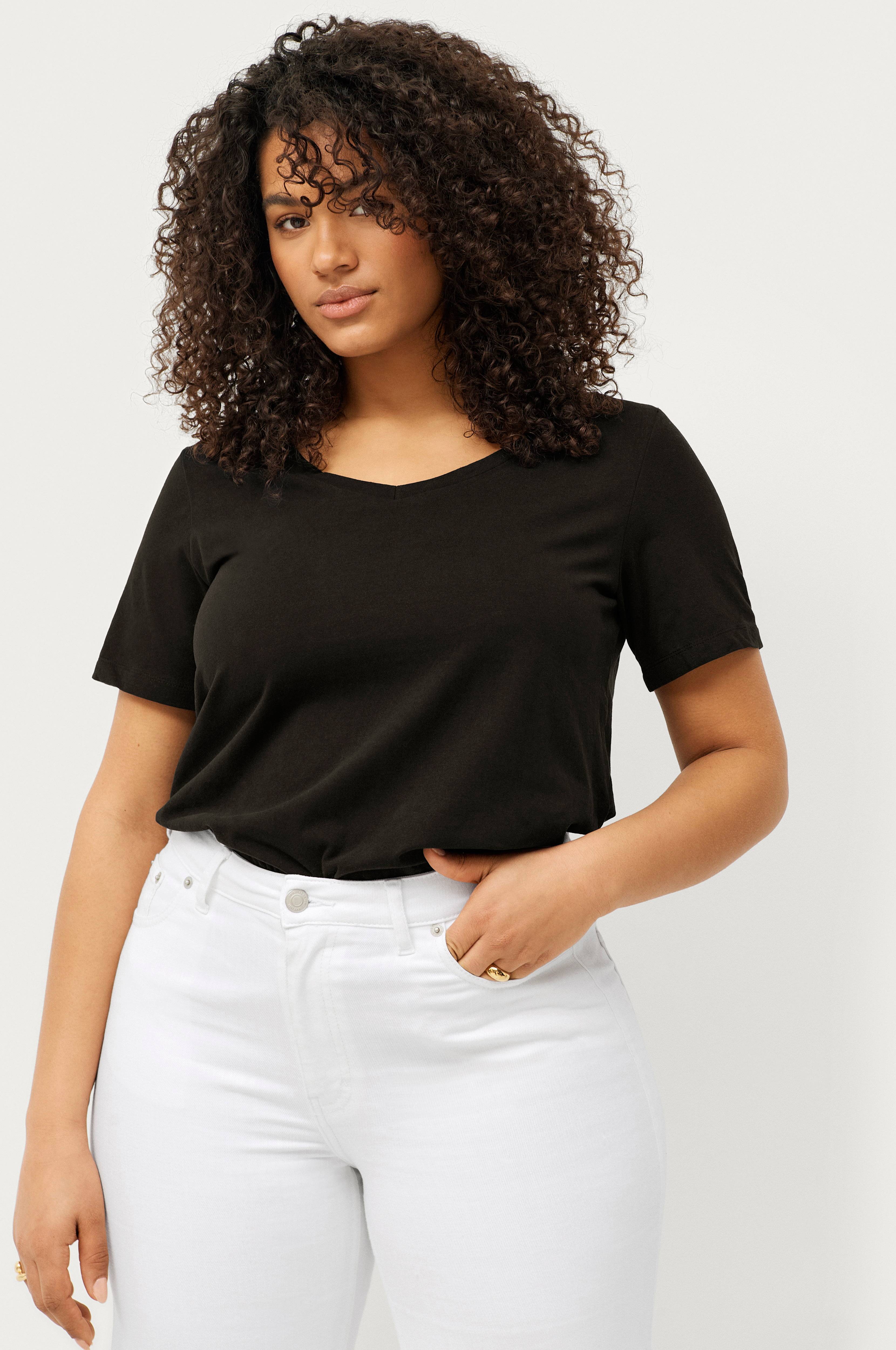 • Kort ærme• V-formet halsudskæring• Komfortabel pasform• Blød, elastisk bomuldskvalitet