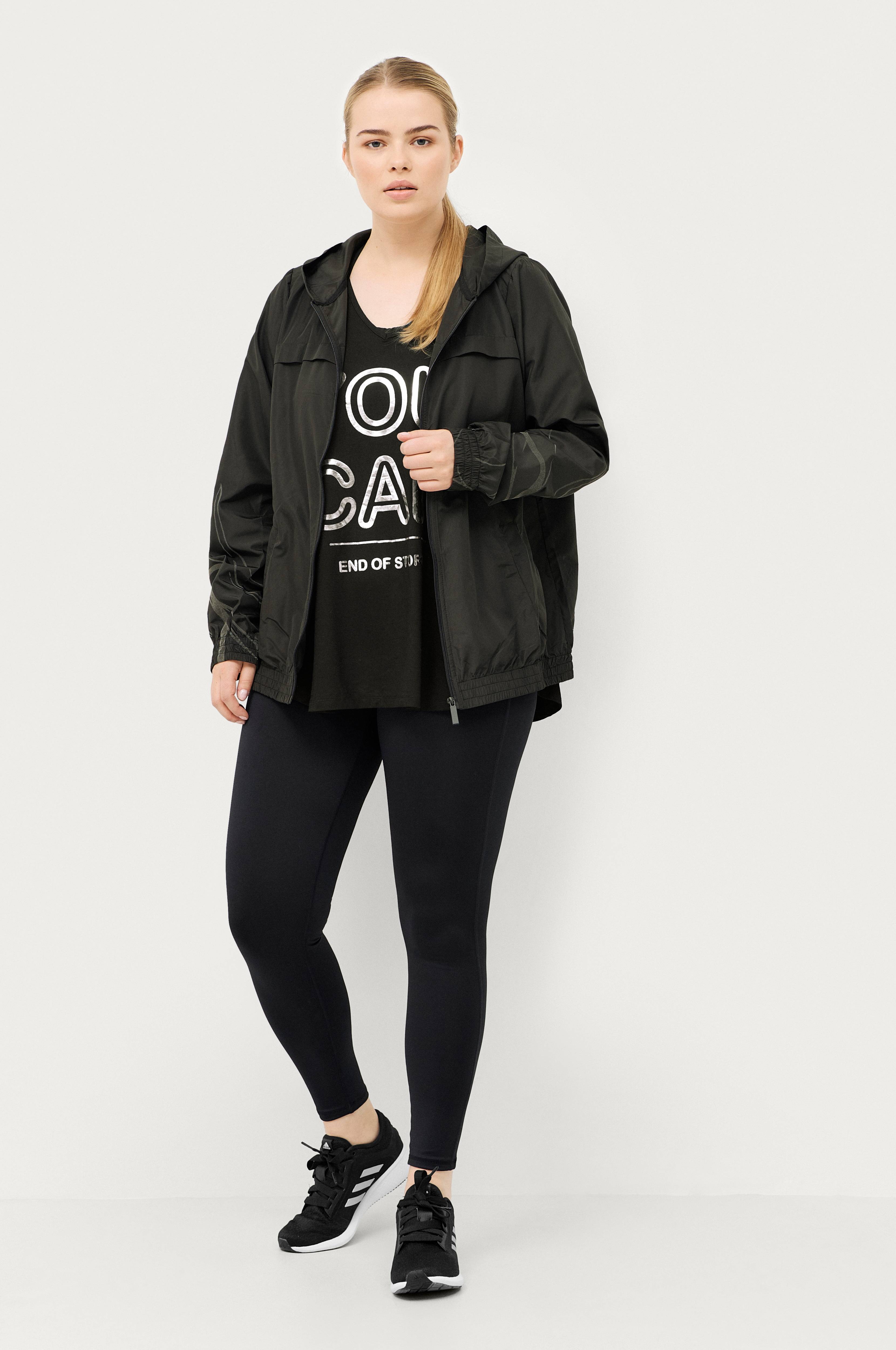 • Store størrelser• Tynd jakke• Lynlås foran• Elastisk bånd nederst og ved manchetterne• Fast hætte• Længde: 68 cm i størrelse S