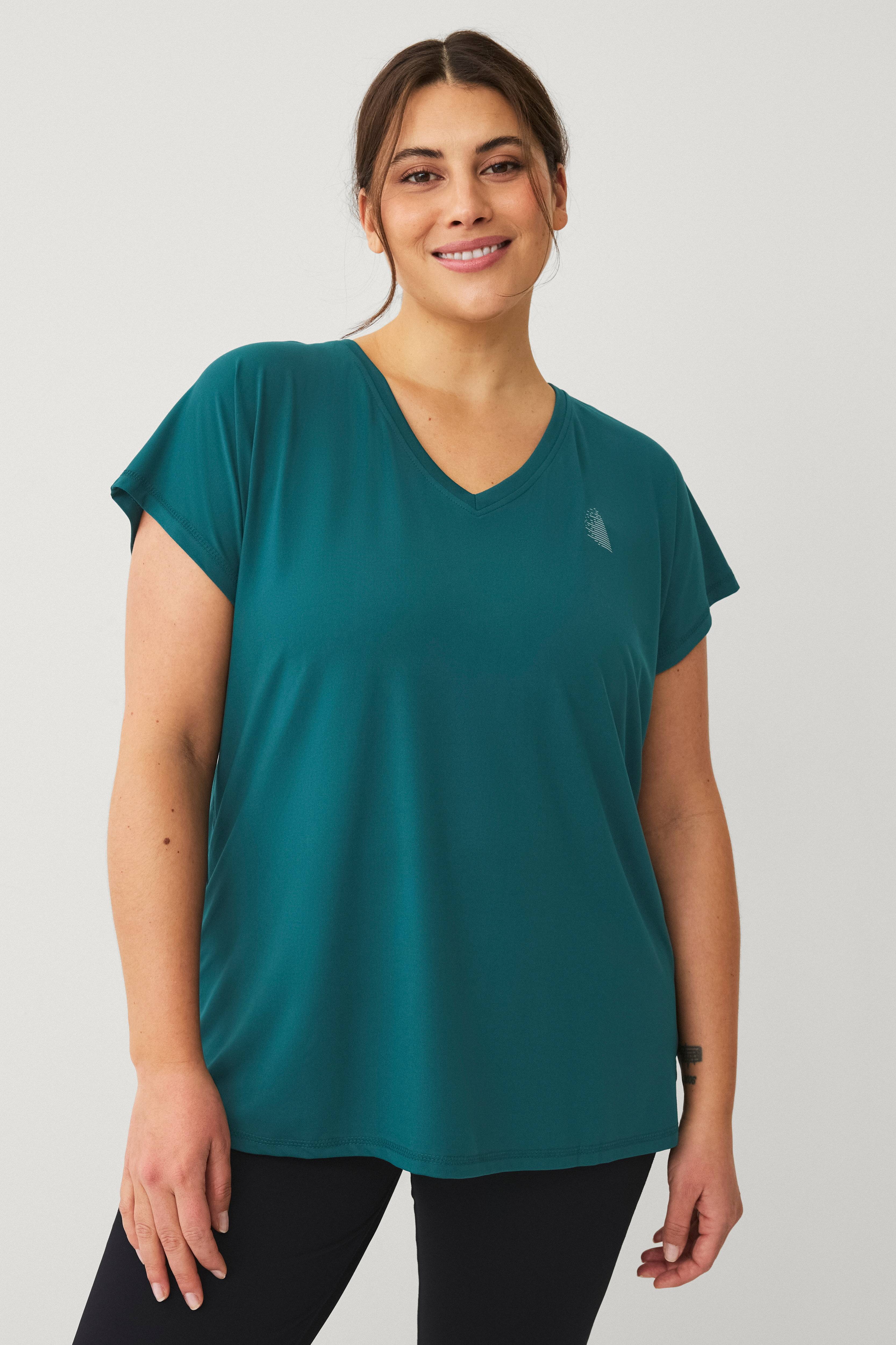 • Store størrelser• Korte ærmer• V-udskæring• Blød, hurtigt tørrende jersey med åndbarhed