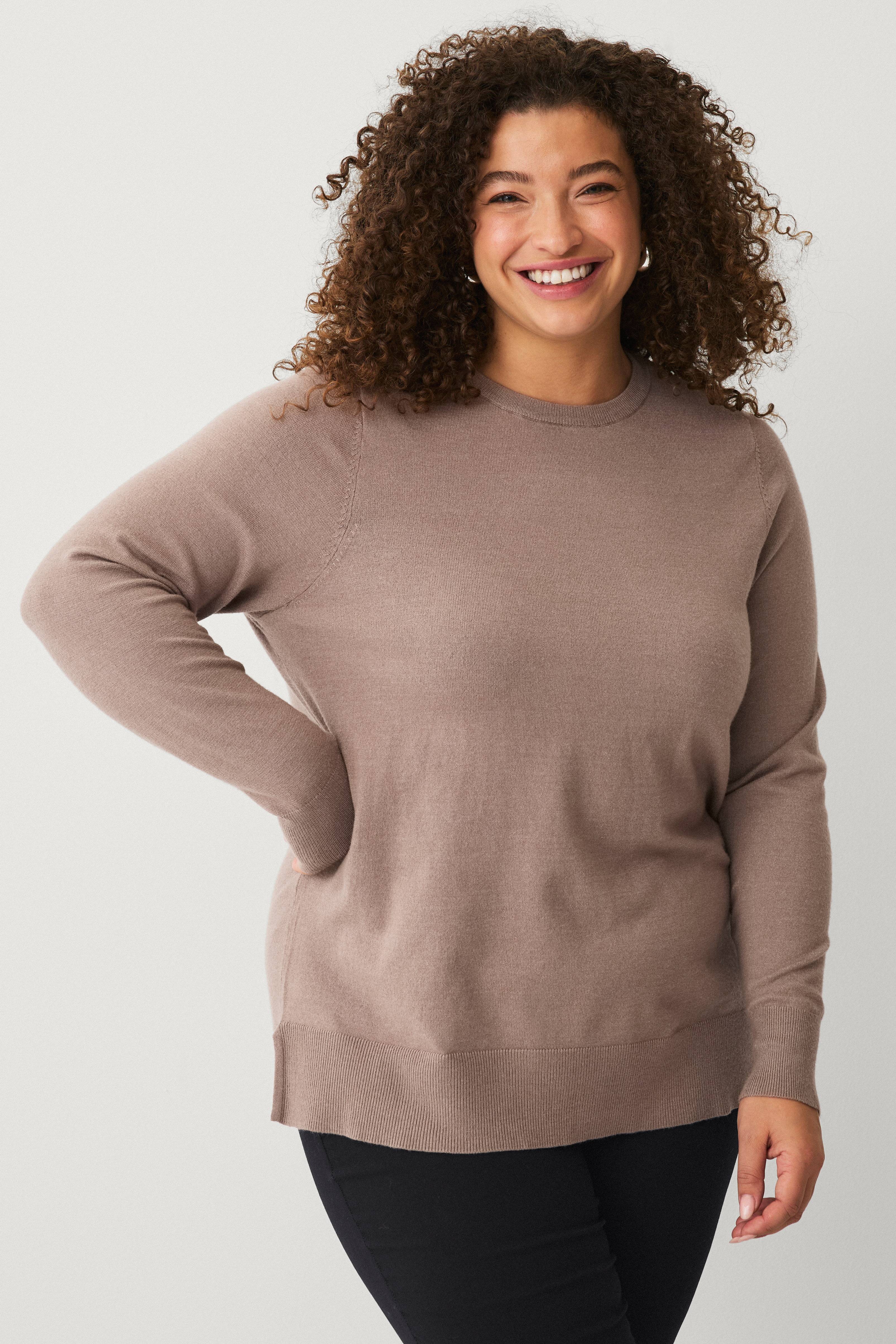• Fintstrikket trøje i blød viskoseblanding• Rund hals• Slidser i siderne• Ribmanchetter ved manchetterne og nederst• Store størrelser