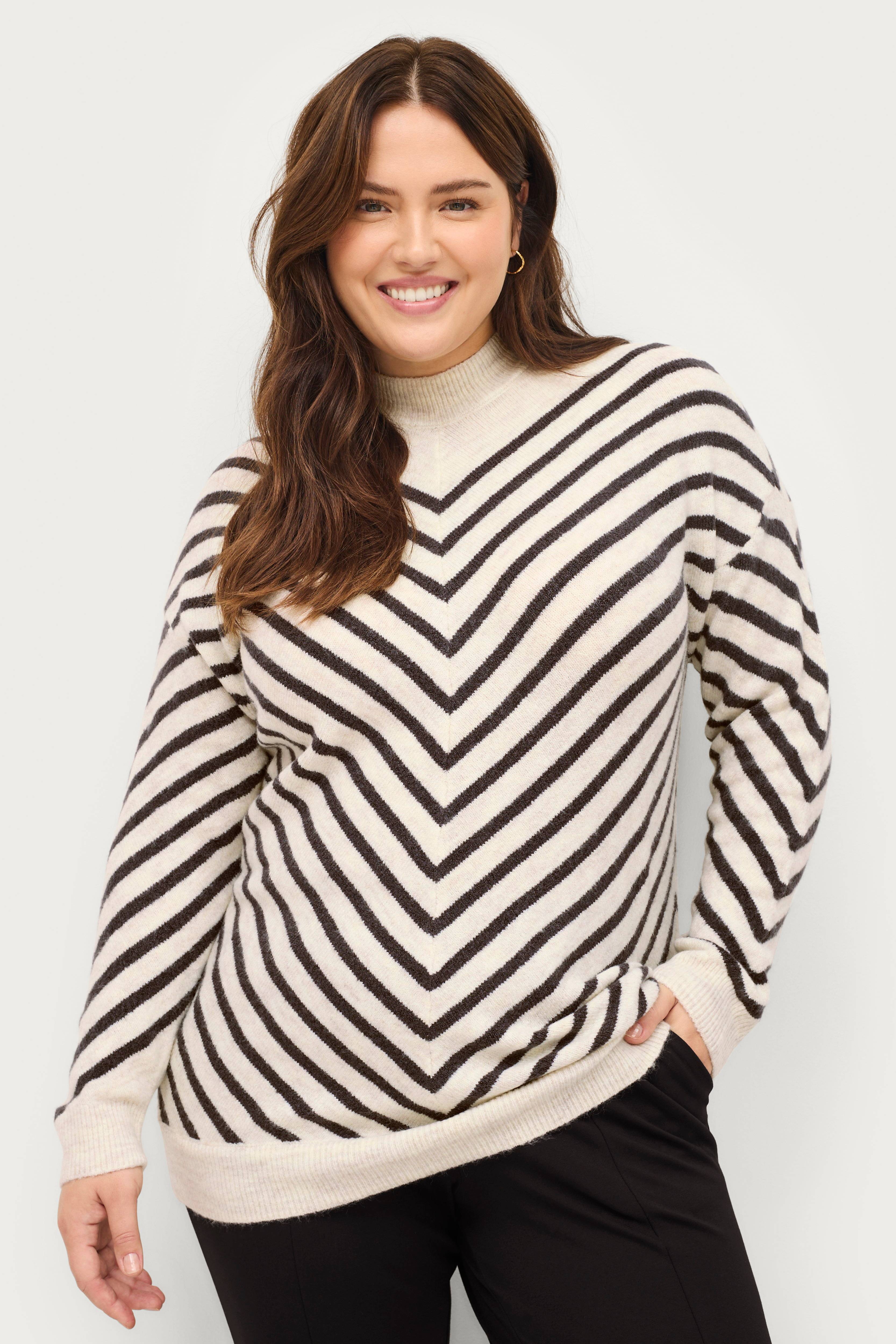 • Blød, strikket trøje• Halsudskæring• Nedsænkede skuldre• Ribmanchetter ved manchetterne og nederst• Løs pasform