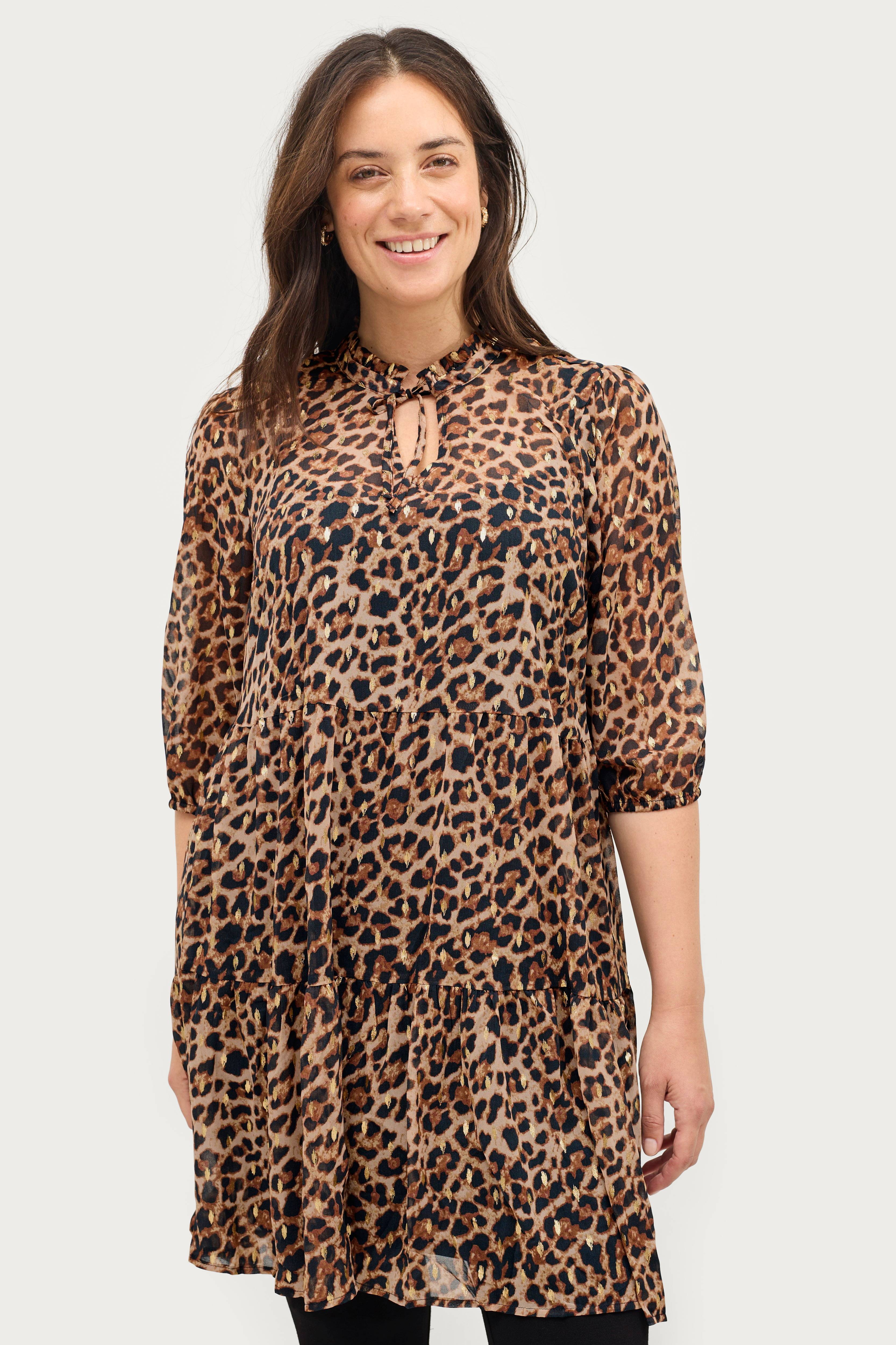 • Store størrelser • Model med svaj med volant nederst • 3/4 lange ærmer med elastiske manchetter • Ventilation med bindebånd i halsen • Fremstillet af chiffon • Underkjole i jersey • Længde: 90 cm i størrelse S
