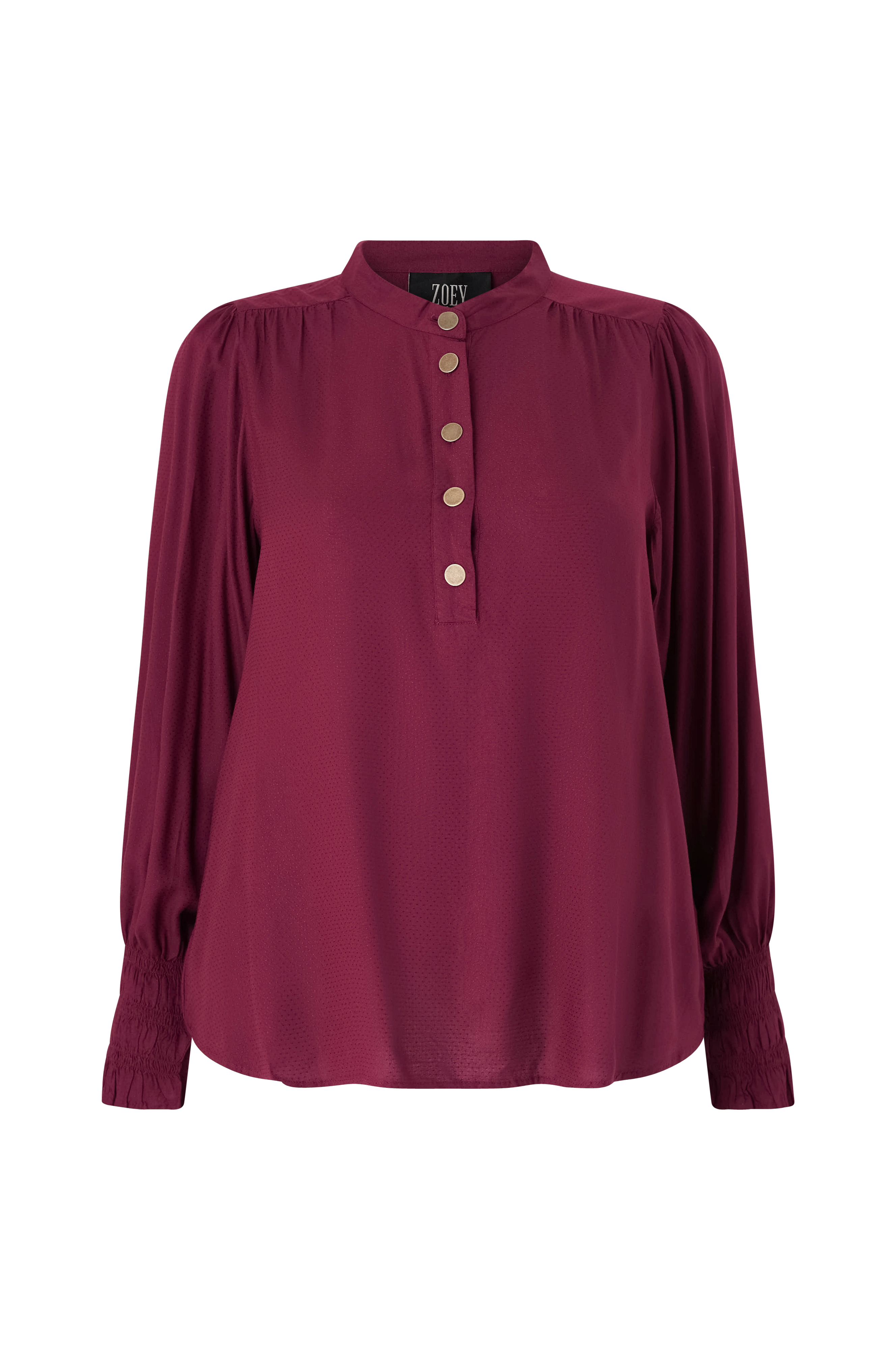• Langærmet, blød, luftig bluse• Synlige, dekorative knapper oppe foran• Stof med prikket mønster• Ballonærmer med smock ved manchetterne• Afrundet halsudskæring• Stor størrelse
