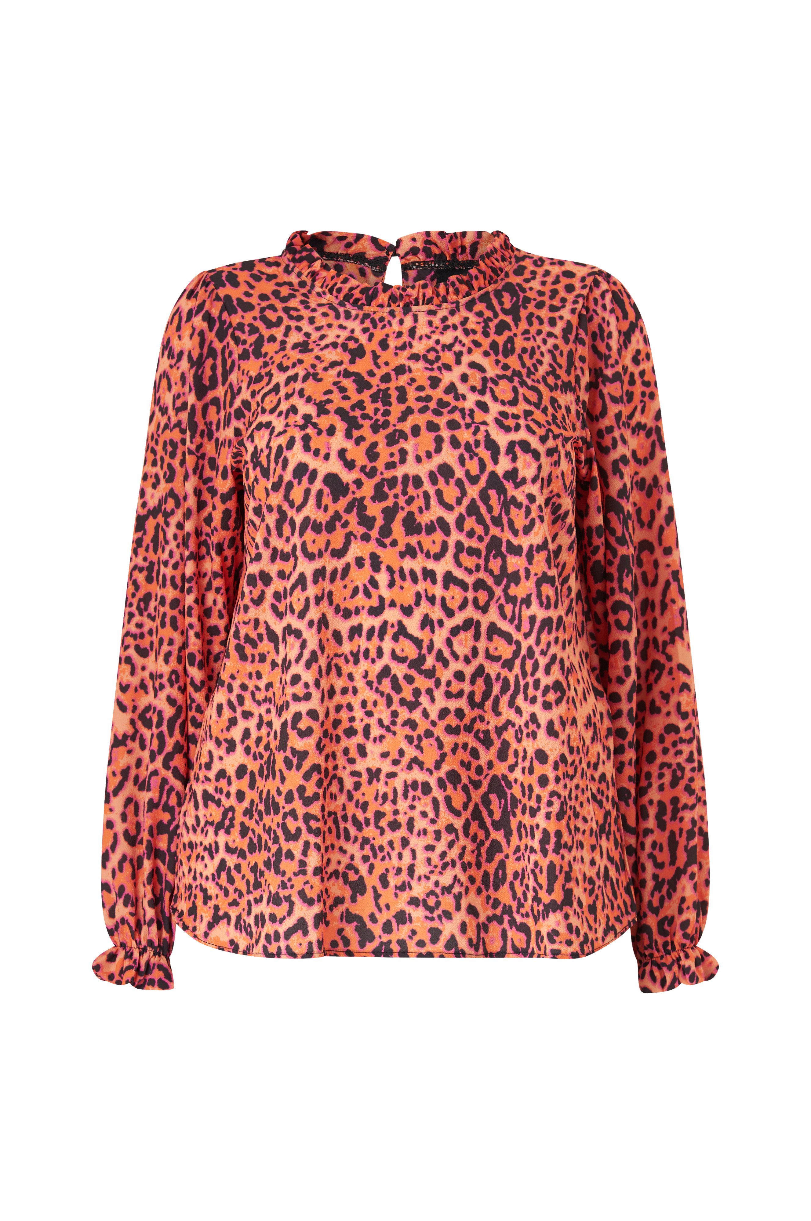 • Bred, lige model i crepe• Rund hals med flæsekant og knap i nakken• Langt ærme med elastik nederst
