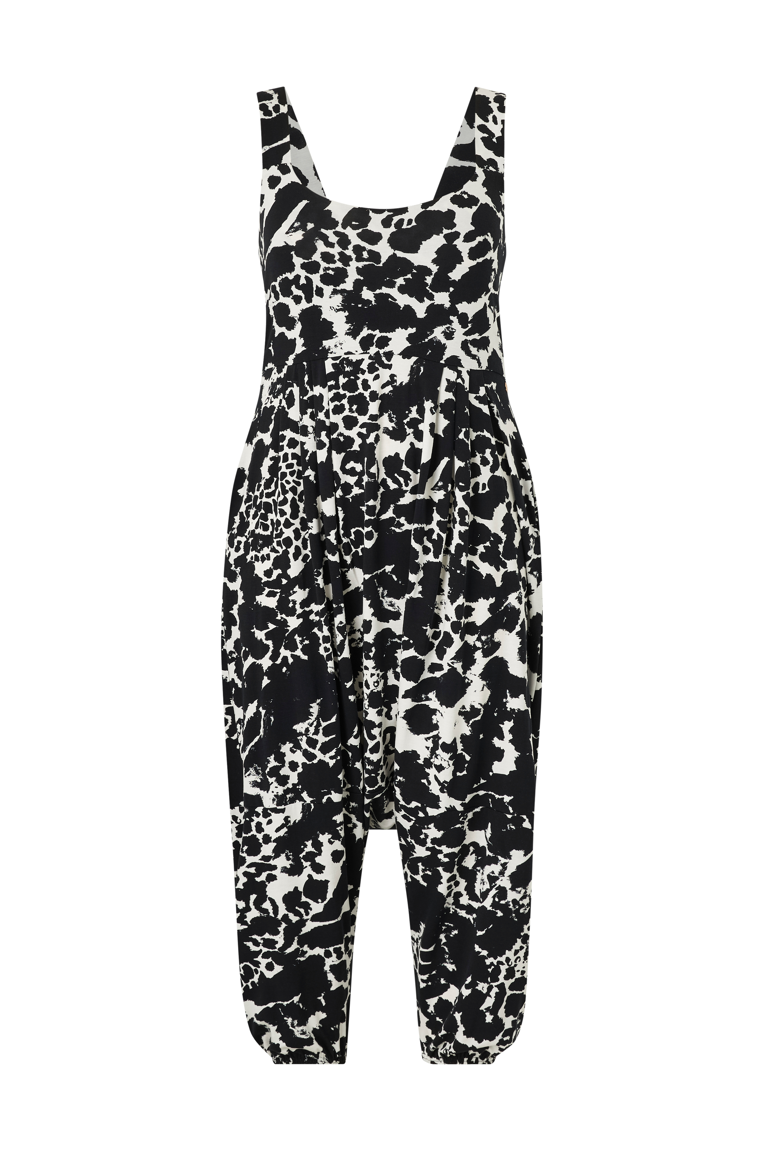 • Ærmeløs buksekjole i viskosejersey• Dyb udskæring foran og bagpå• Baggy snit• Korte ben• Lommer i siderne• Store størrelser