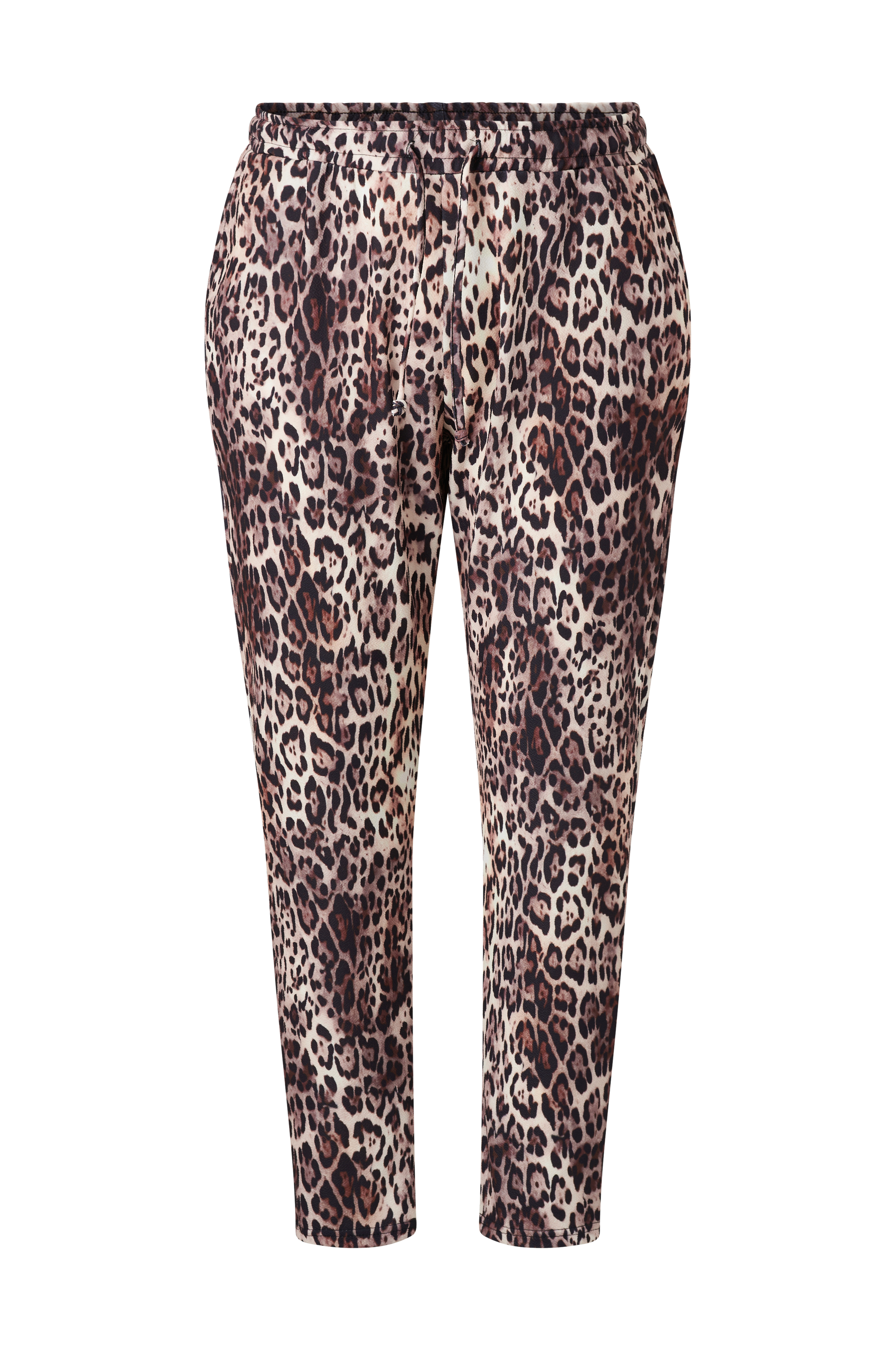 • Leopardmønstrede, elastiske bukser med let, dejlig struktur• Elastisk talje med lynlås• Indsnævrende ben• Store størrelser• Indre benlængde: 73 cm i størrelse S