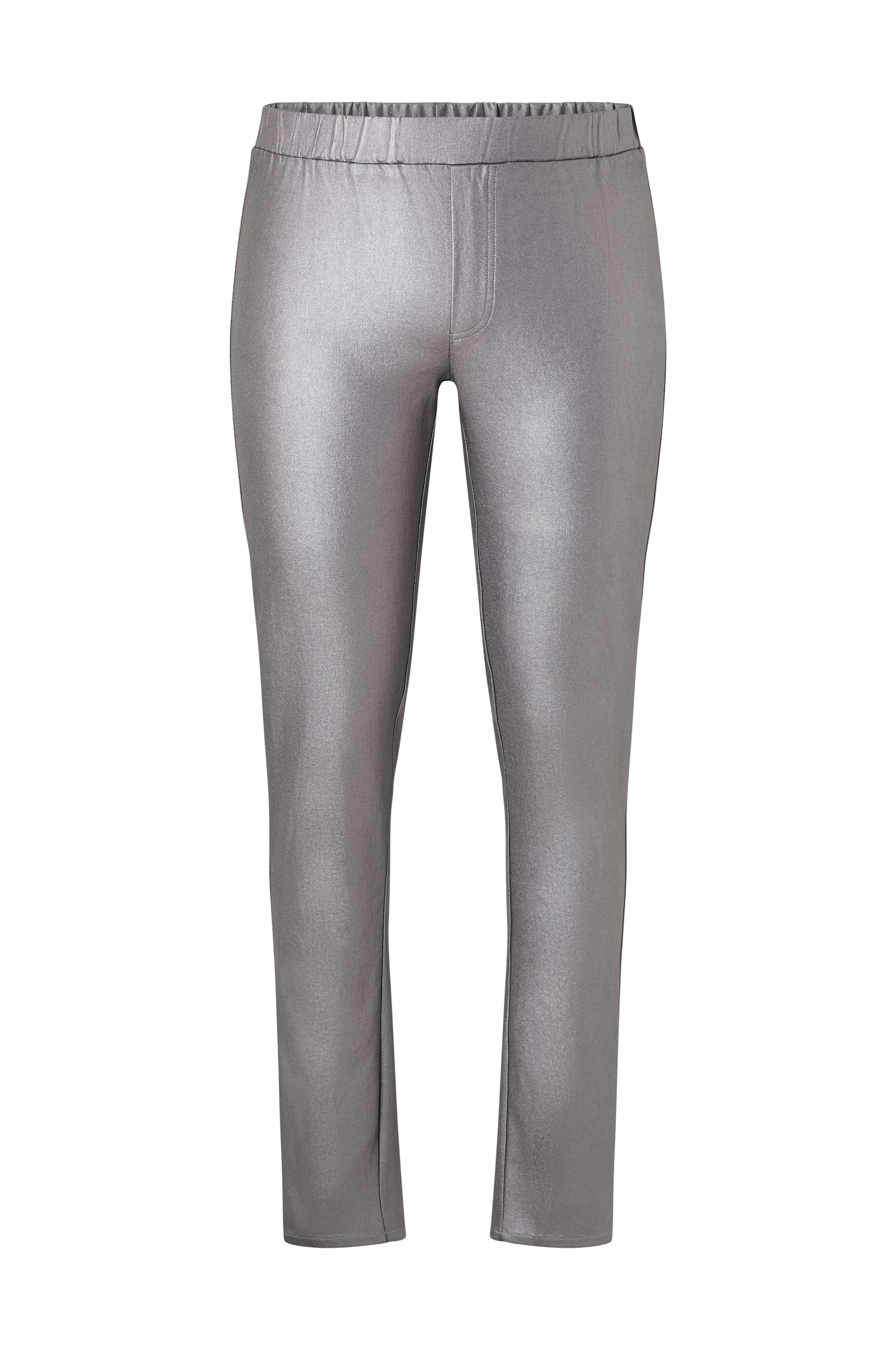 • Elastiske, sølvfarvede bukser med smal pasform• Elastisk talje• To baglommer• Store størrelser• Indre benlængde: 84 cm i størrelse S