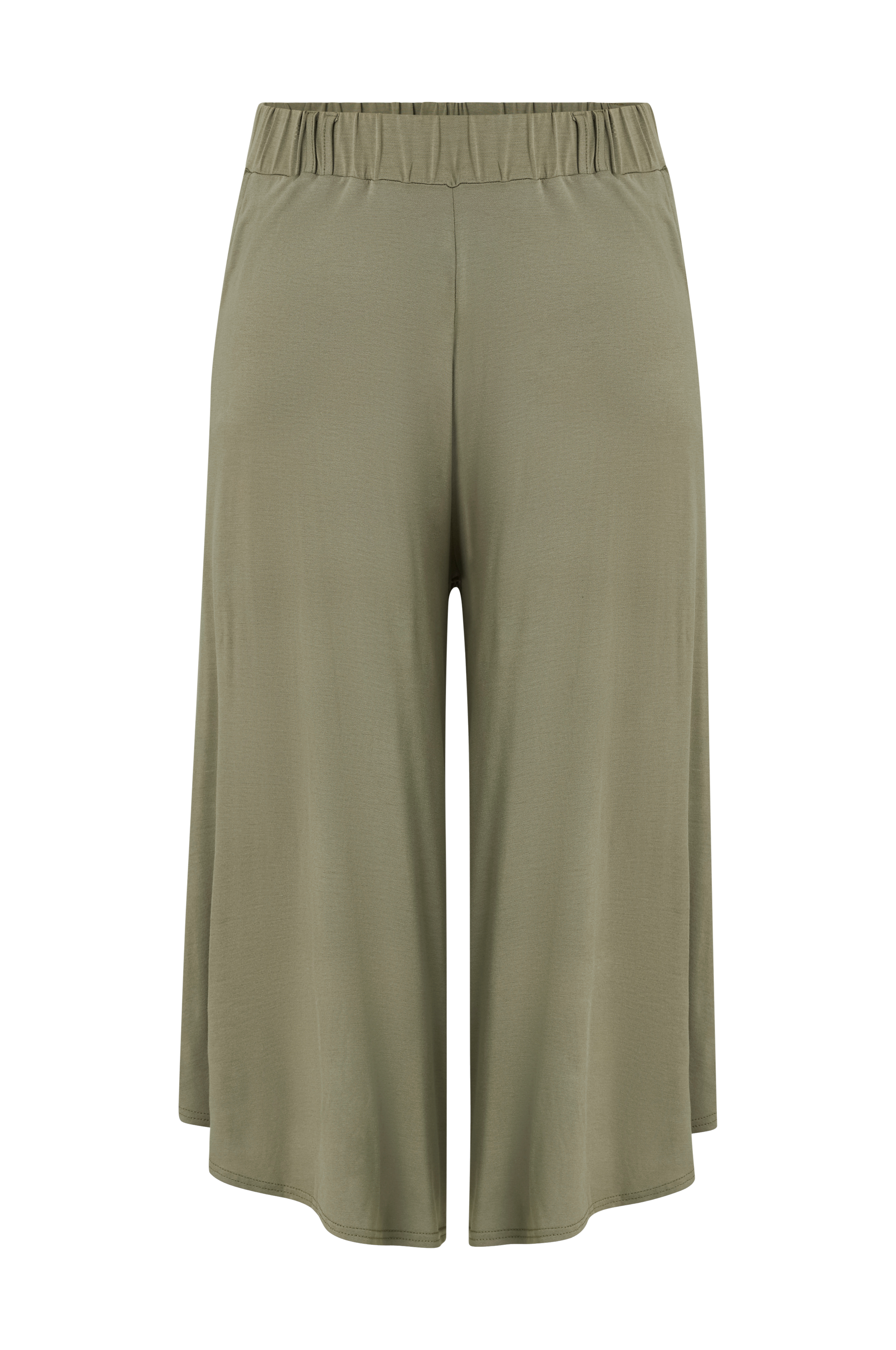 • Brede bukser i viskosejersey• 3/4 lange ben med asymmetriske benafslutninger• Elastisk talje• Lommer i siderne• Store størrelser• Indre benlængde: 56 cm i størrelse S