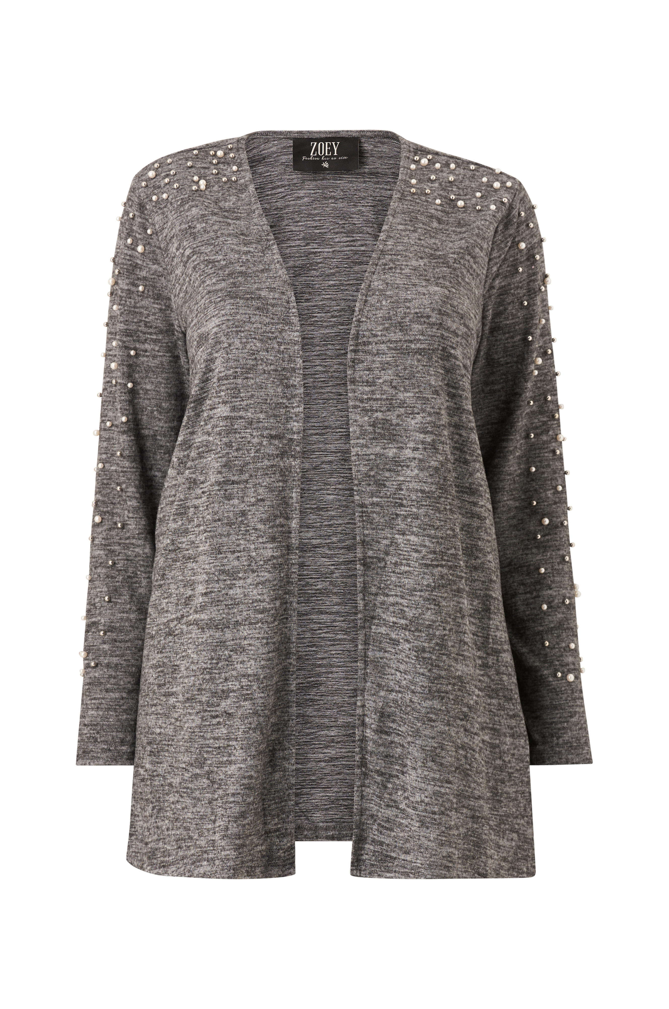 • Fintstrikket kvalitet• Åben forside• Perler på hver skulder og på ærmerne• Store størrelser