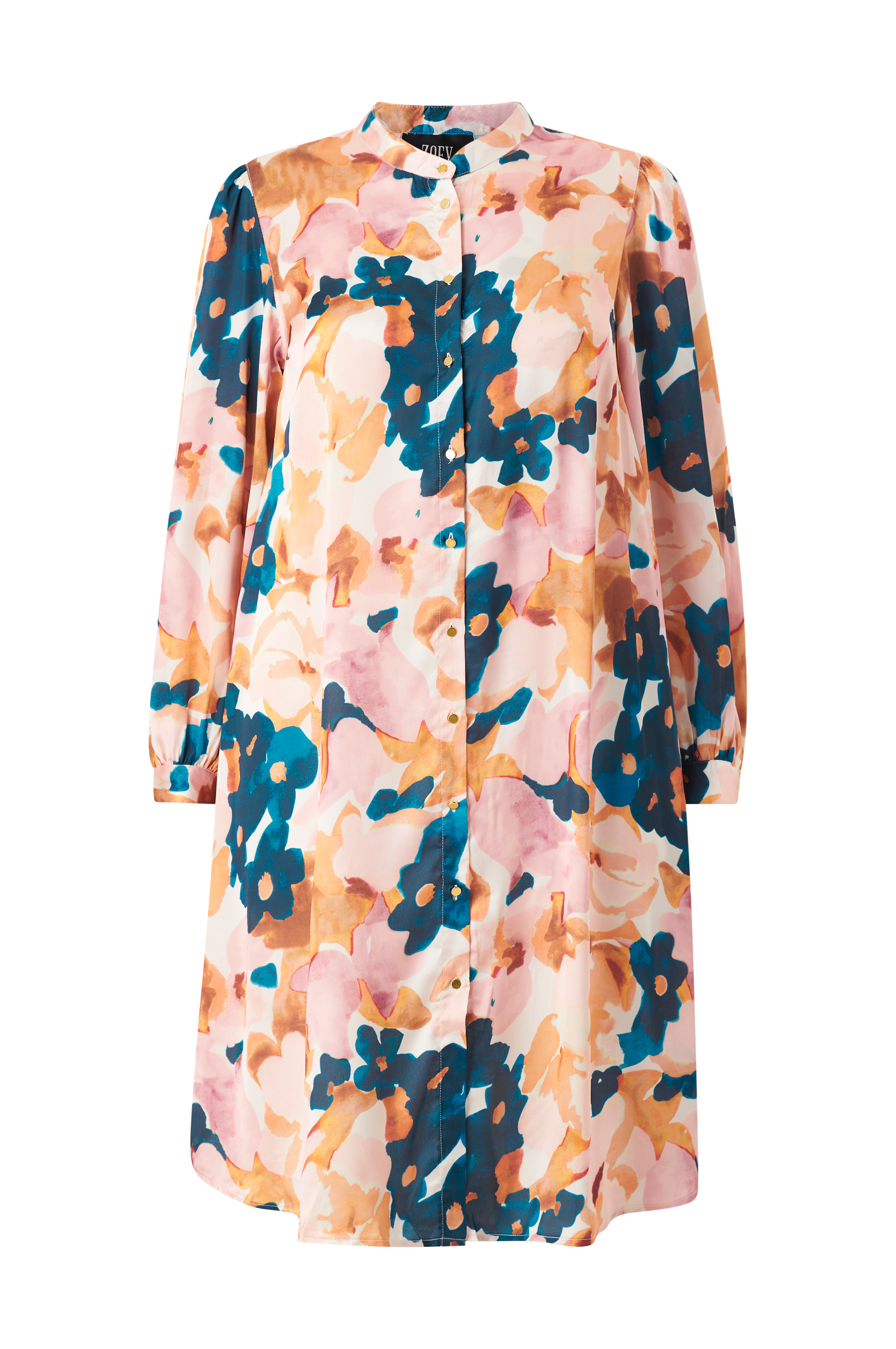 • Mønstret kjole• Kvalitet med glans• Guldfarvede knapper foran• Ballonærmer med manchet• Store størrelser• Længde: 110 cm i størrelse S