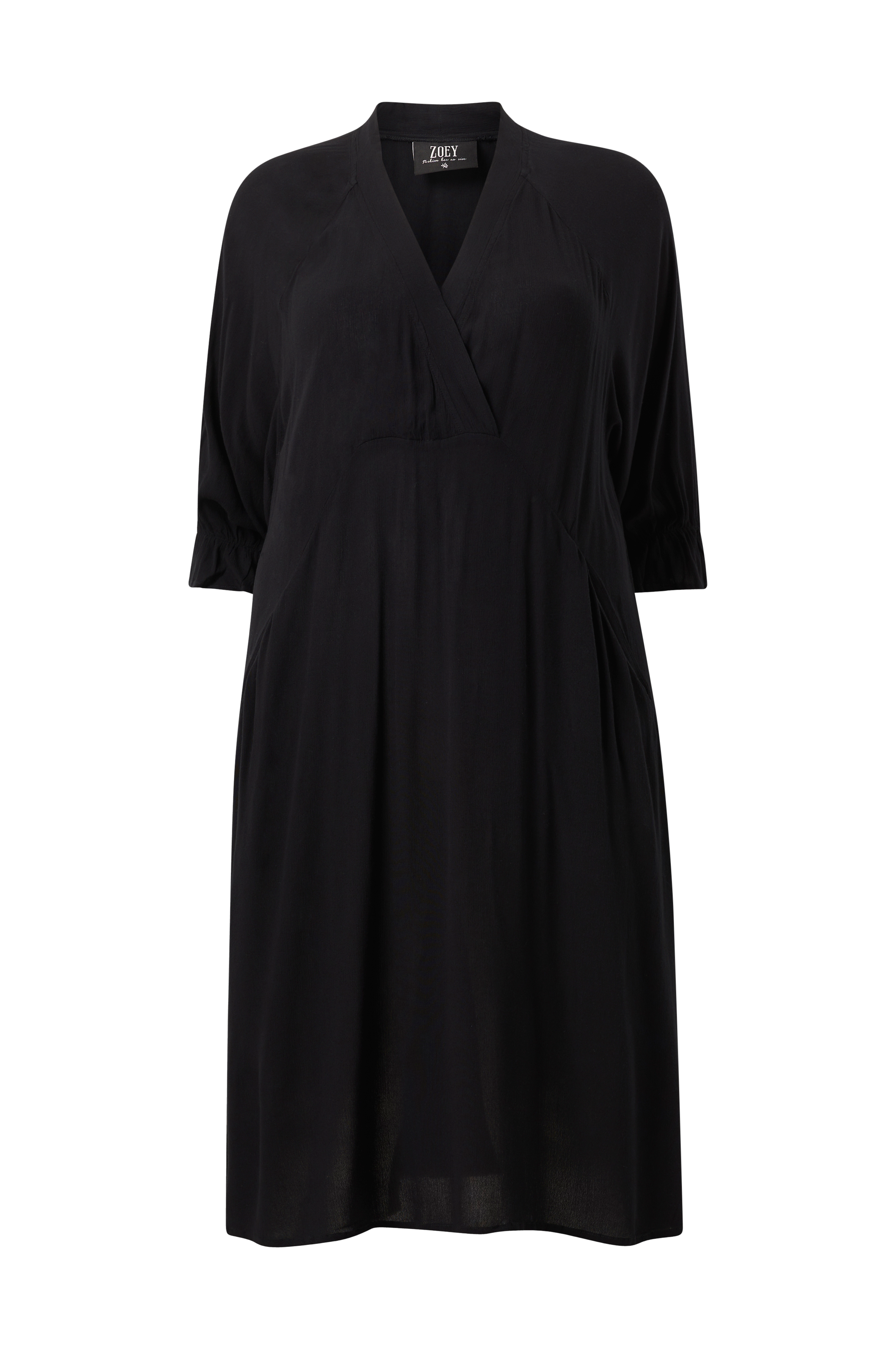 • Store størrelser• Model med slå-om design på toppen• Bredt, 3/4 langt ærme med elastik nederst• Afrundet udskæring under brystet• Indlagte lommer• Længde: 120 cm i størrelse S