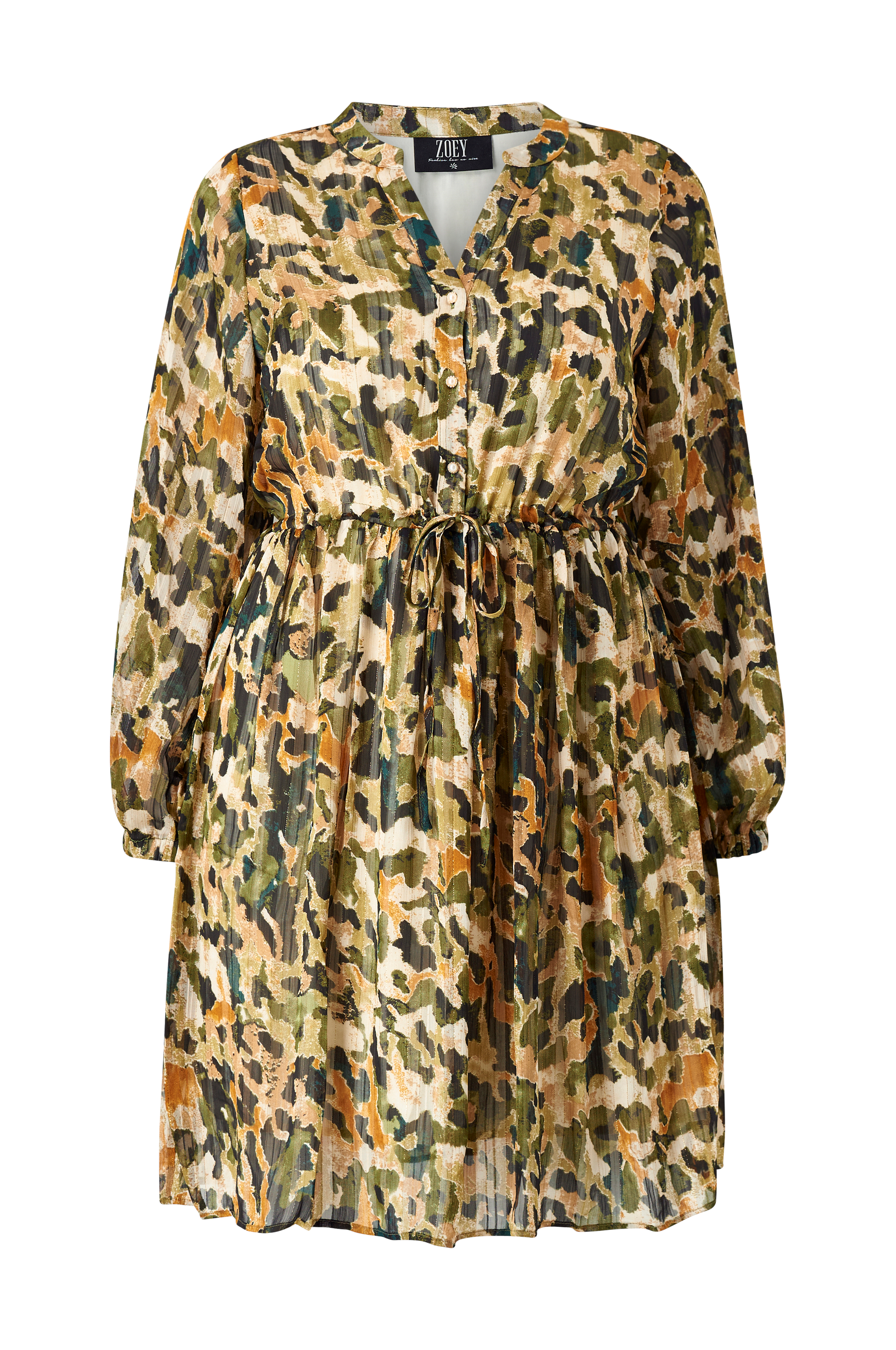 • V-udskæring• Knapper oppe foran• Træksnørre ved taljen• Transparente ballonærmer med elastiske manchetter• Fremstillet af chiffon med glimmertråd• Vævet for• Store størrelser• Længde: 104 cm i størrelse S