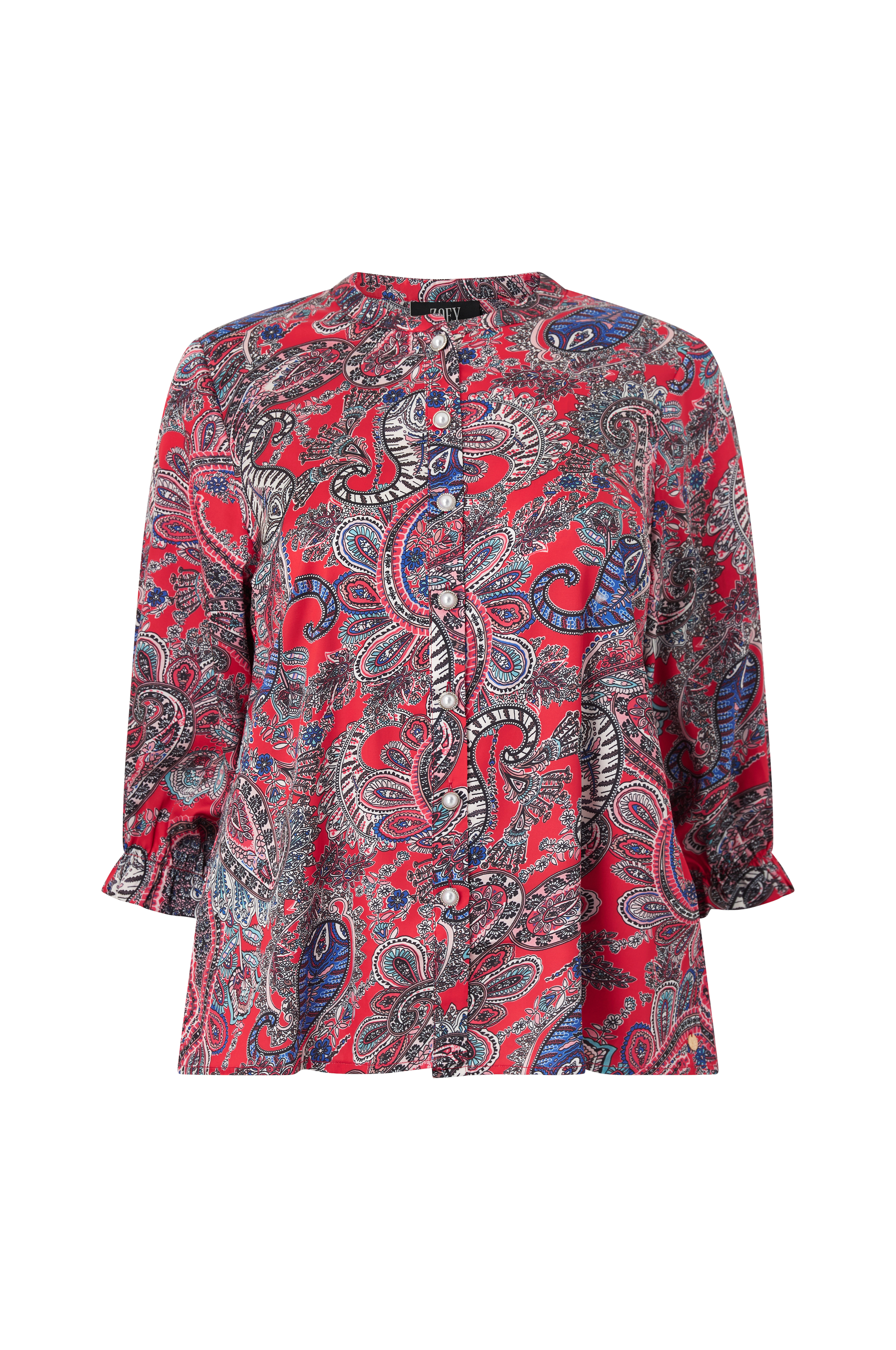 • Skjorte med skinnende materiale med printet mønster• Perleknap med glitrende rhinsten hele vejen rundt• 3/4 lange ærmer med elastik ved manchetterne