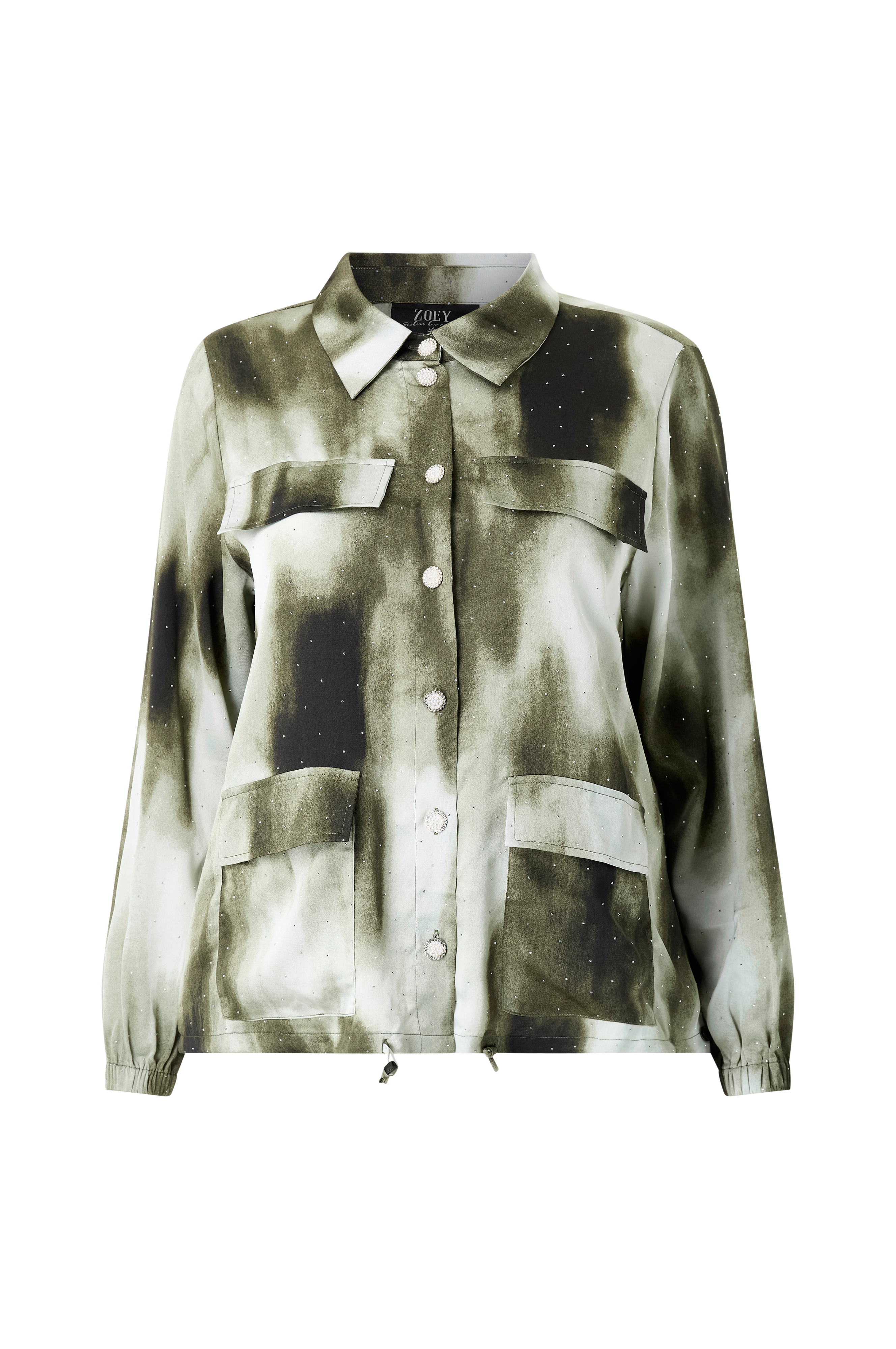 • Skjorte med funklende, dekorative rhinstene• Elastik ved manchetterne• Knaplukning• To snydelommer med låg• To lommer med låg• Træksnørre ved nederste kant• Plusstørrelser