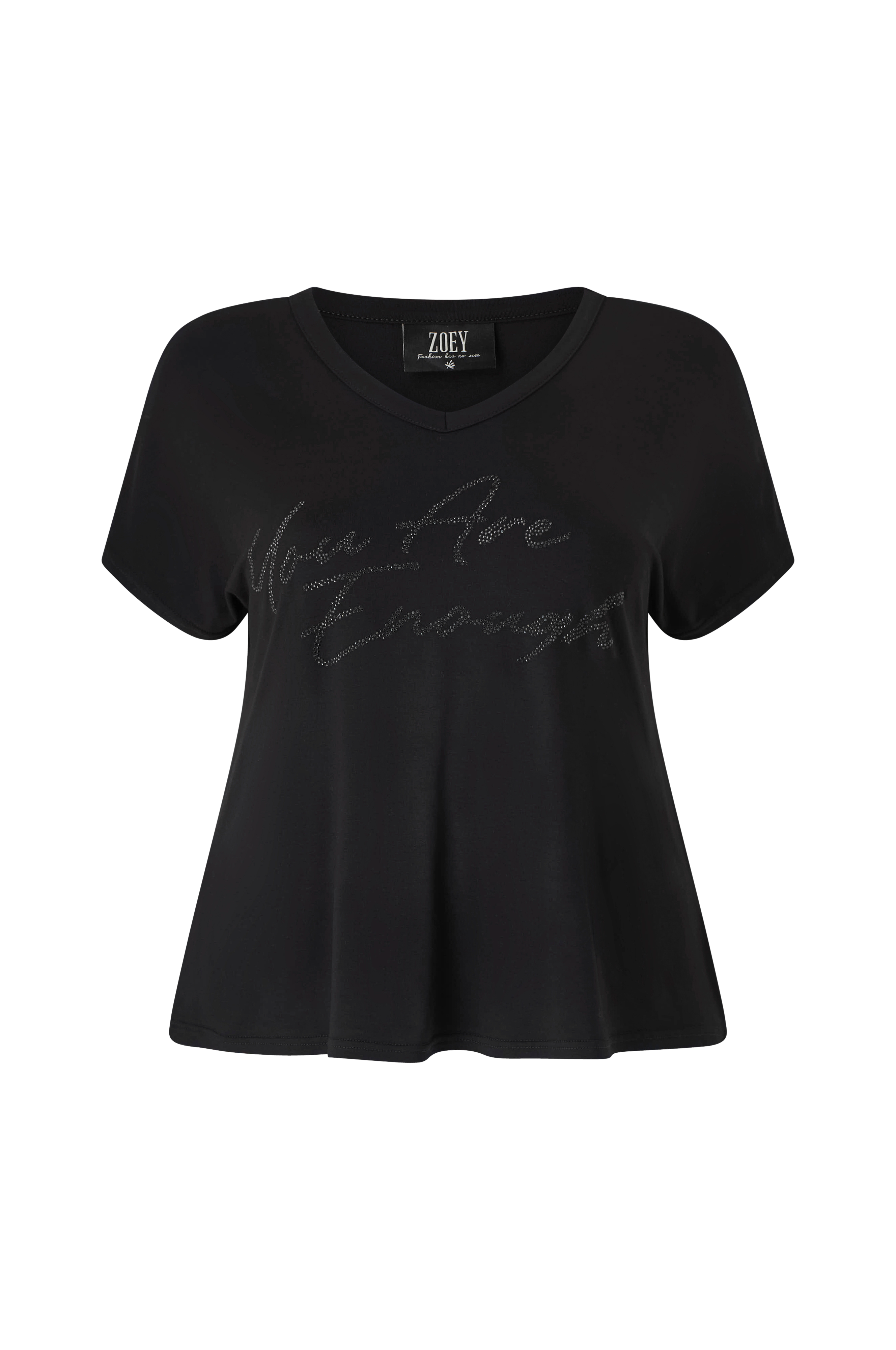 • V-formet t-shirt med kort kimonoærme• Bølgeformet detalje bagpå• Tryk foran• Plusstørrelse