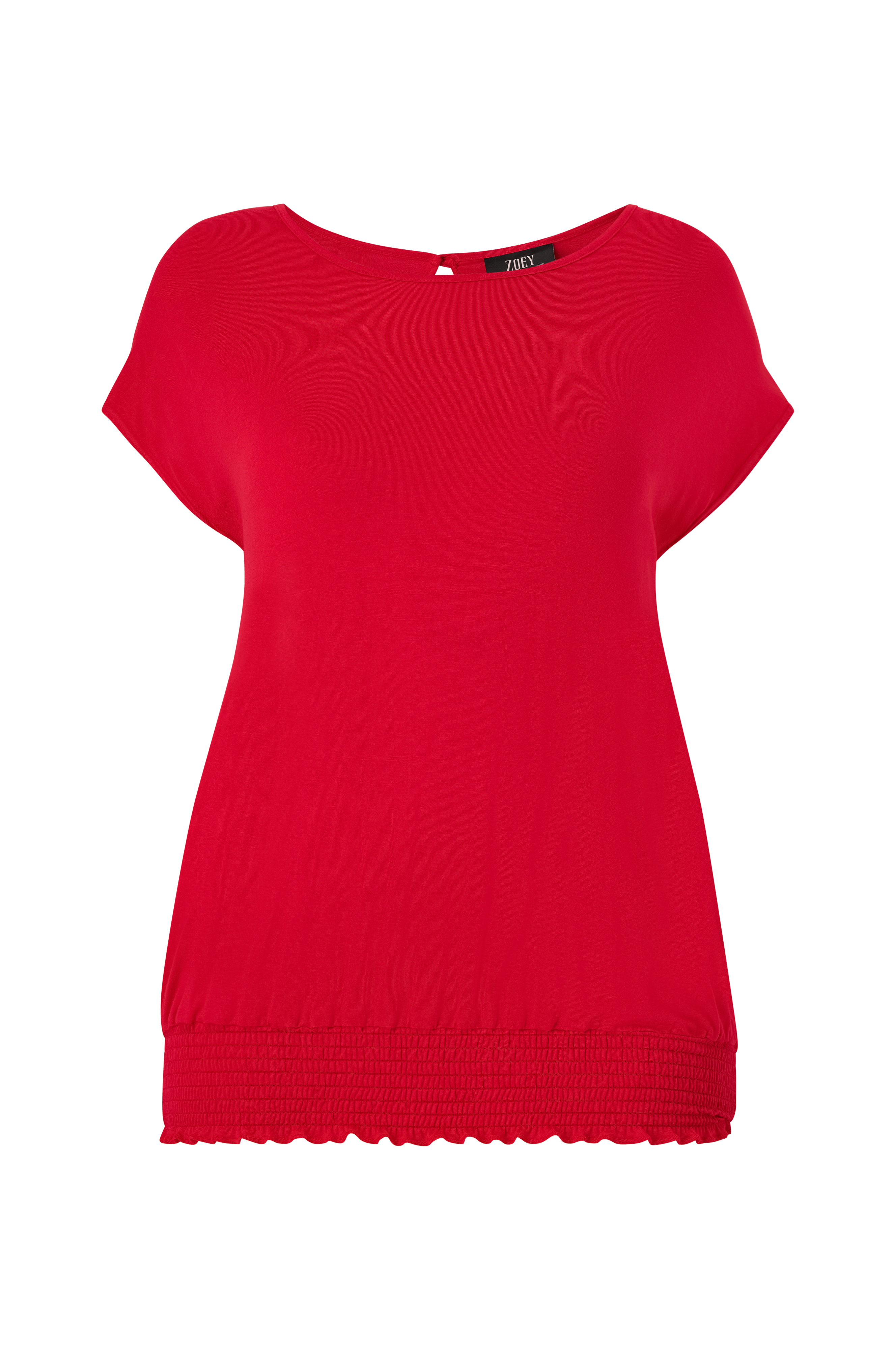 • Fremstillet af blød, elastisk viskose• Rund hals• Åbning med knap i nakken• Nedsænkede skuldre• Smocket søm• Store størrelser