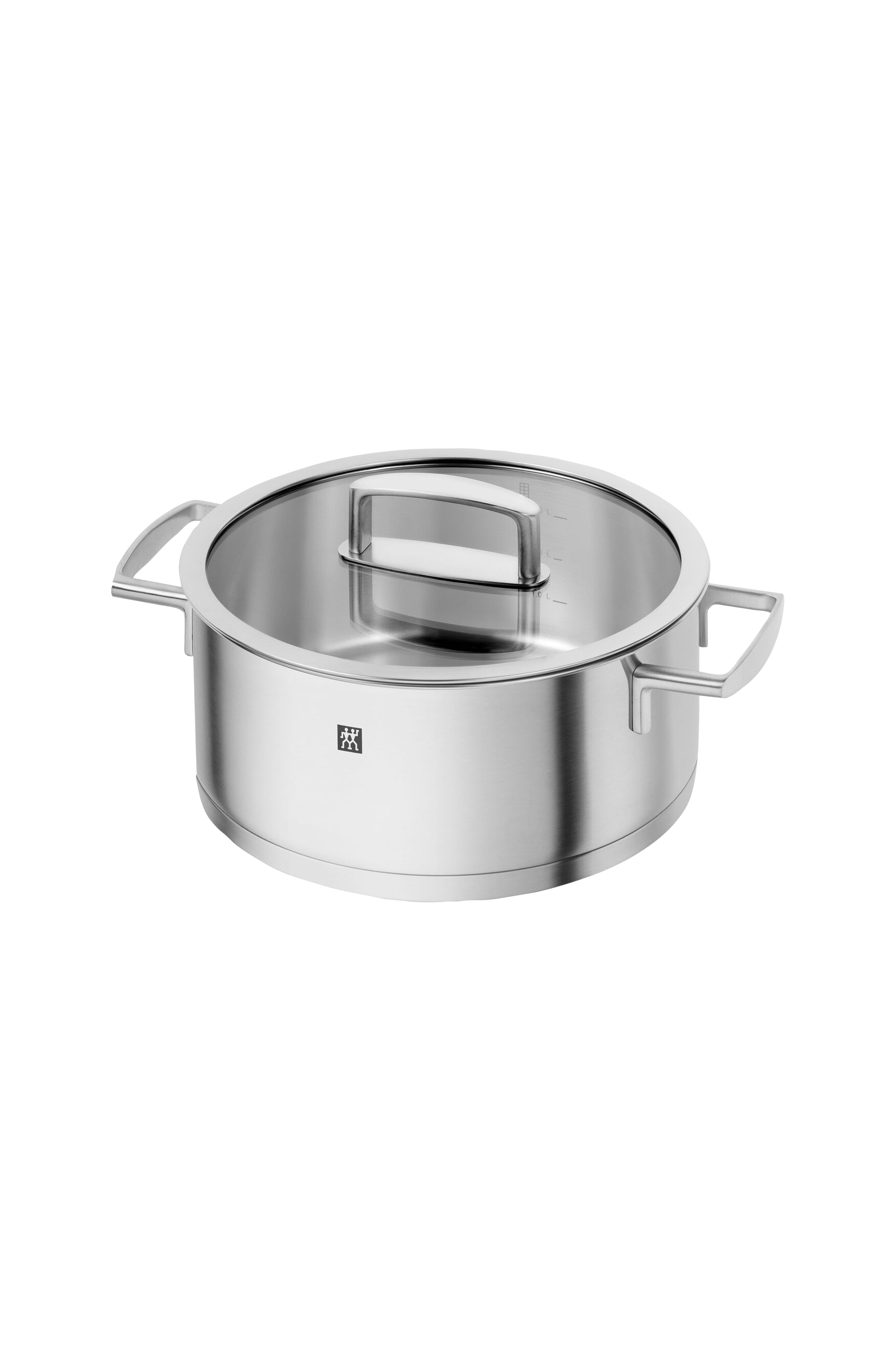 Gryde fra Zwillings Vitality-serie med glaslåg og robuste håndtag.
